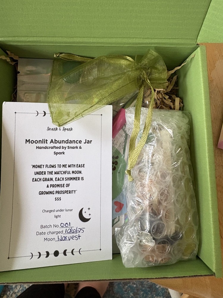 Invite abundance and prosperity into your life with this beautifully handcrafted Money Manifestation Jar. Each jar is lovingly created with intention, positive energy, and symbolic ingredients chosen to attract wealth, success, and financial stability. Inside, you’ll find a unique blend of: • 🌾 Rice — a timeless symbol of prosperity and steady growth • 💎 Crystals & Stones — chosen for their energy of abundance and clarity • 🍃 Herbal & Magical Additions — to enhance luck and amplify manifestation power • ✨ Money Charm & Sigil-Engraved Cork — sealed to hold and protect your intention Every jar is sealed and charged under cleansing energy, ready to bring blessings to your home, workspace, or altar. Perfect for: • Manifesting financial goals • Gift-giving to anyone starting a new venture • Adding to a manifestation altar or prosperity corner Each jar is one of a kind — the charm and contents may vary slightly, making yours truly unique. 🔮 Approx. Size: 4–5 inches tall 🎁 Ships securely packaged and ready to gift Free Shipping