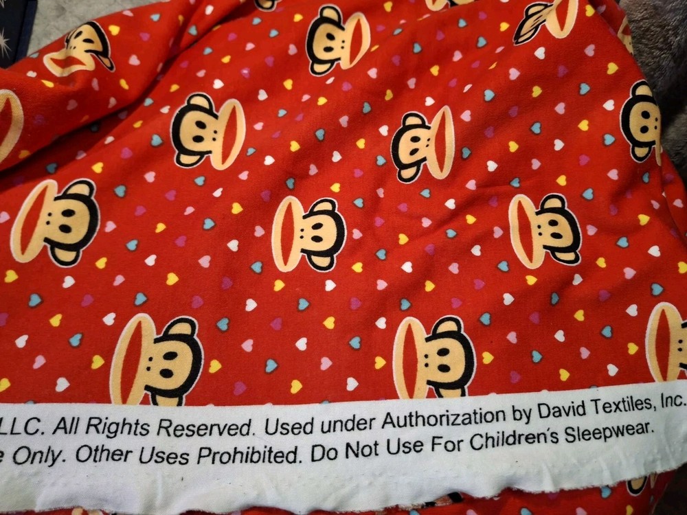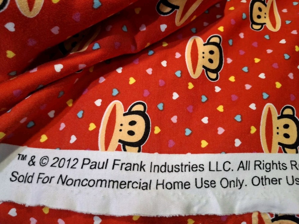 Cotton Jersey Stretch Retro Red Monkey Fabric Paul Frank Material Approximately 65in X 58in Please view all photos zooming in on them as they are part of the description for you to judge condition.