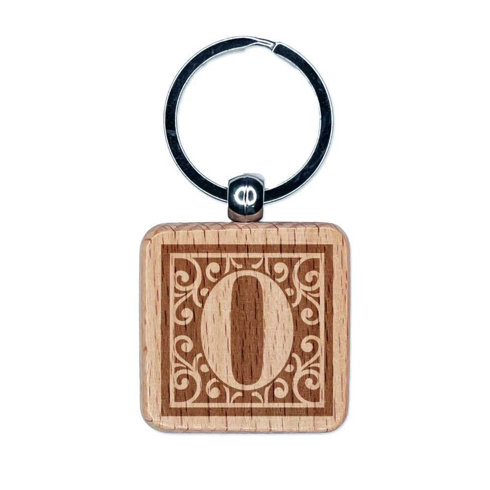 Monogram Swirls Number 0 Zero Engraved Wood Square Keychain Tag Charm