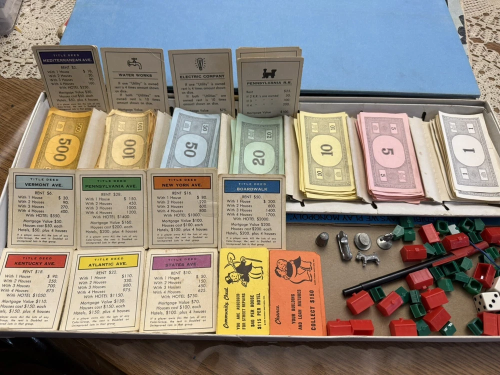 Monopoly 1961 Classic Board Game Parker Brothers Real Estate Comp Orig Box Se all that is in the box