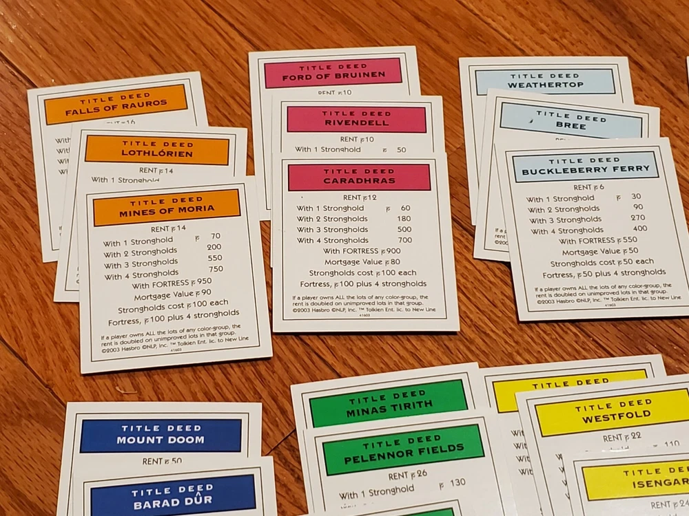 Monopoly 2003 Lord Of The Rings Trilogy Edition Replacement Property Deed Cards