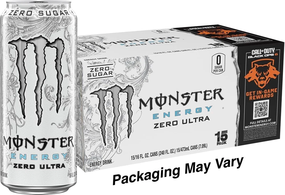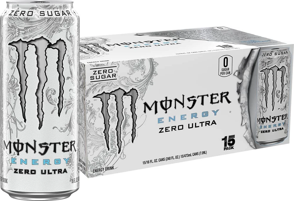 Monster Energy Zero Ultra, Sugar Free Energy Drink, 16 Fl Oz (Pack of 15)