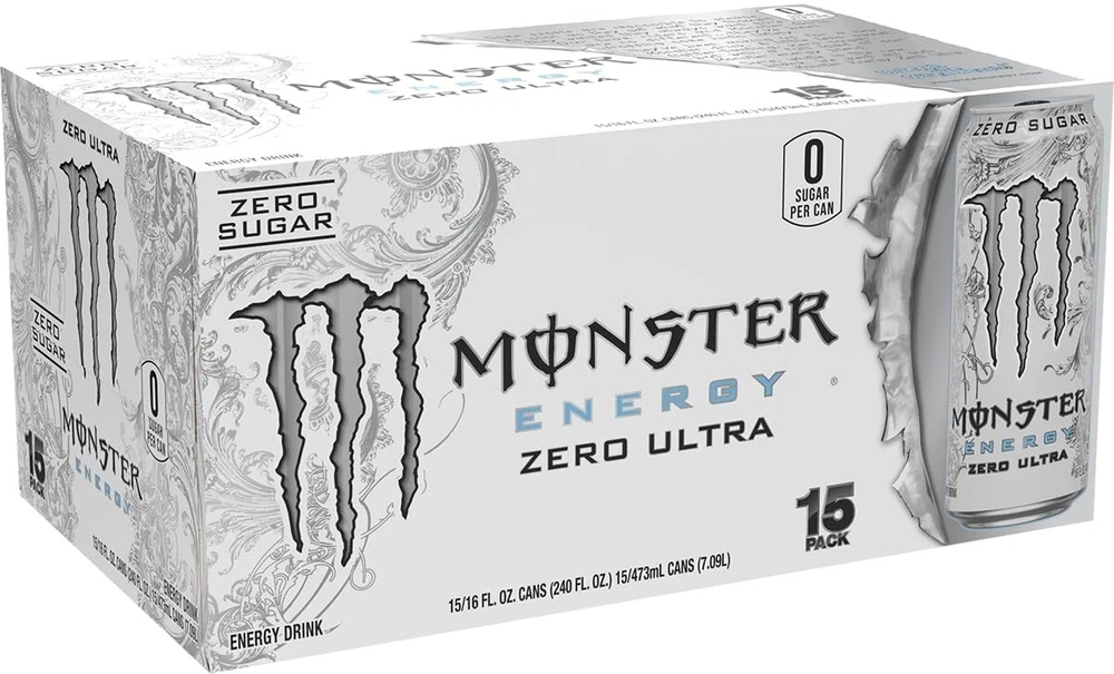 Brand: Monster Energy Package Information: Can Product Dimensions: 2.6 x 2.6 x 6.2 inches; 1.04 Pounds Type: Does not apply Flavor: Zero Ultra Item Form: Liquid Country of Origin: USA Theme: Energy Drinks Number of Items: 15 Manufacturer: Monster Energy Item model number: u-3c-34070