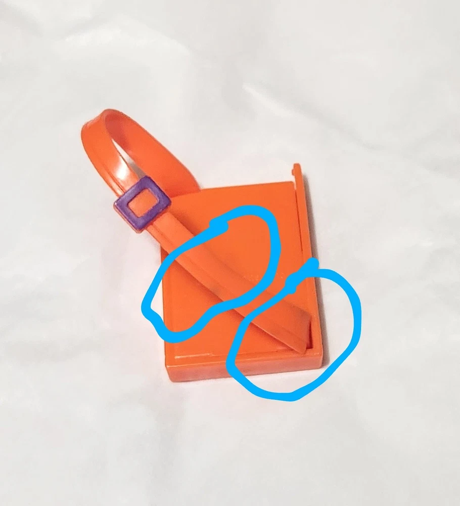 The Monster High 2010 1st Wave Holt Hyde Orange Turntable Boombox Backpack is a unique accessory for Monster High dolls. This plastic backpack features a turntable boombox design in orange color, inspired by the character Holt Hyde. It is lightweight, water-resistant, and doesn't require batteries. The backpack is suitable for ages 5 and up. The item dimensions are approximately 1' in length, 1 1/2' in height, and 1' in width, making it a fun and stylish addition to any Monster High collection. This is missing the top checkered piece and it has 2 little marks on the belt but you can barely see them. It's made of plastic and it measures 1' in width and 1 1/2' in height.