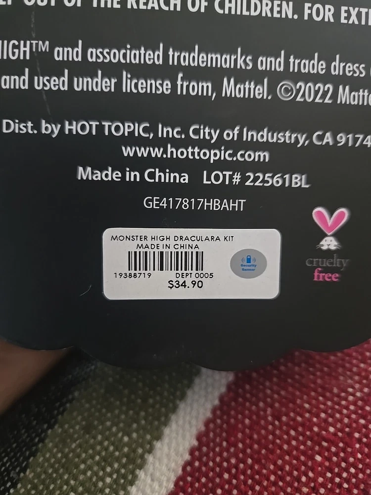 Alphabet Cream Type:N/ACoverage:N/AEffect:N/AActive Ingredients:N/AMPN:N/ALash Length:LongSet Includes:Eye ShadowBrand:Mattel Hot TopicSkin Type:AllDepartment:WomenCountry/Region of Manufacture:ChinaFormulation:N/ASize:11” X 7 1/2”Makeup Shade:AssortedPeriod After Opening (PAO):N/AColor:MulticolorMaterial:N/ANumber of Items in Set:N/AFeatures:Animal Cruelty-Free