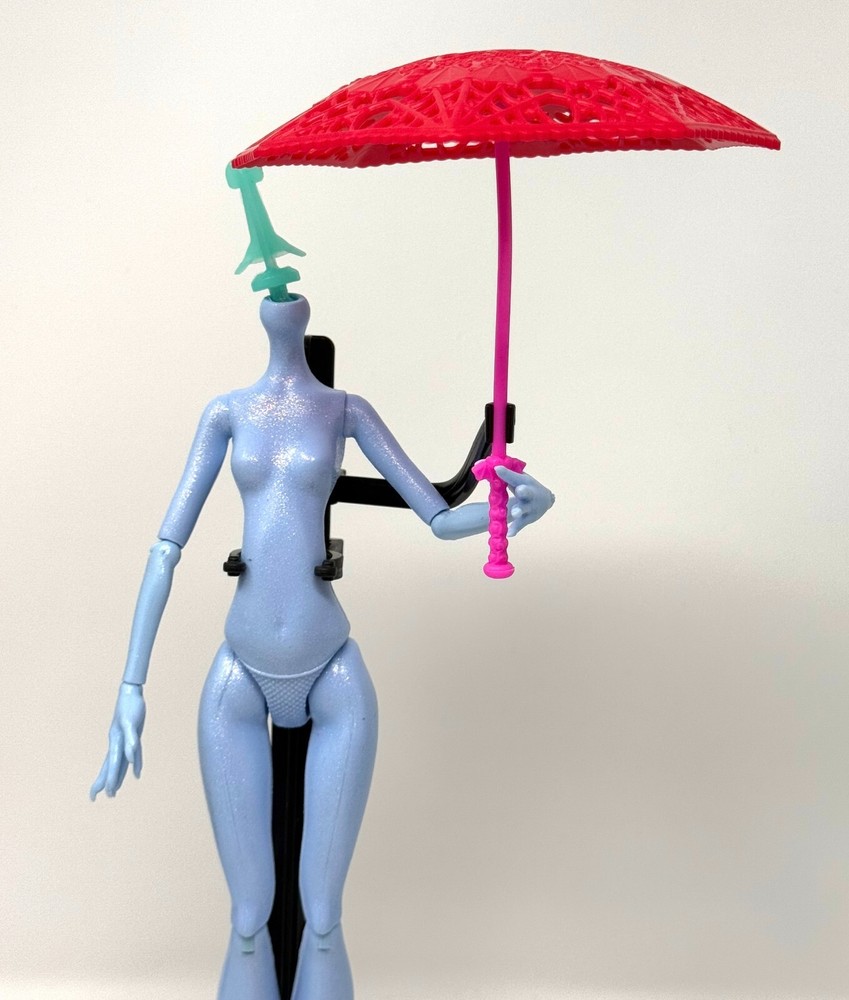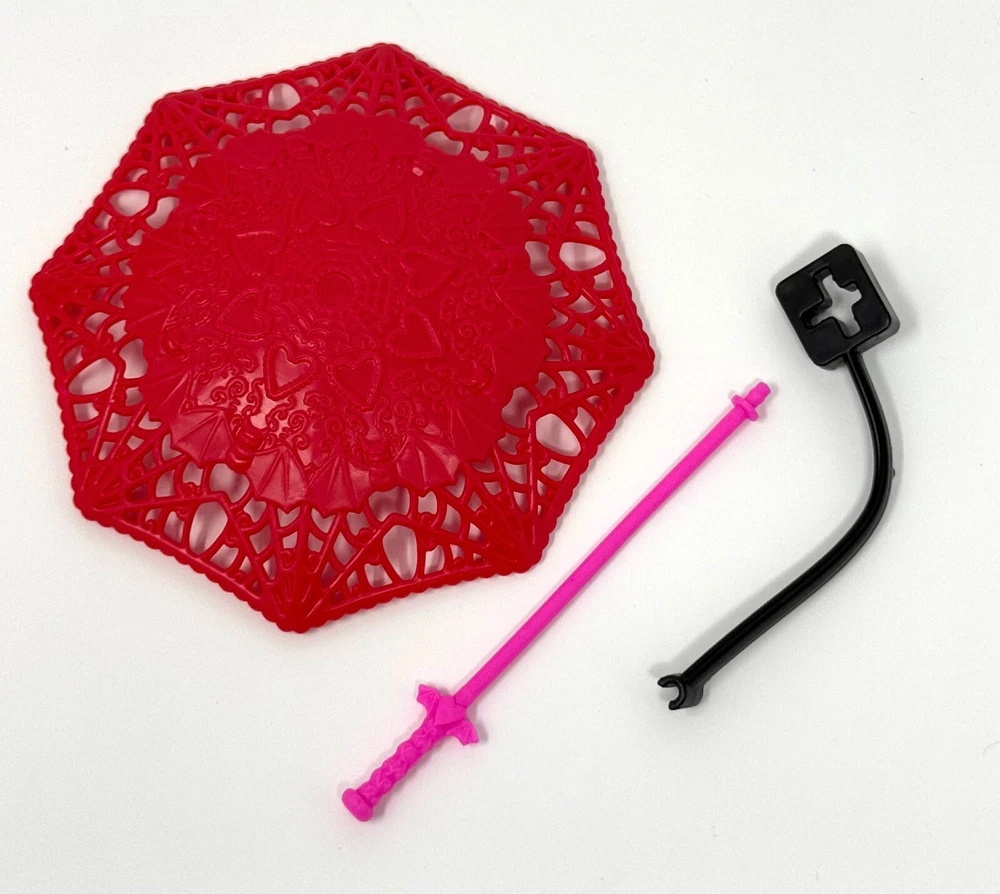 Monster High Howliday Love Edition Draculaura Doll Outfit Accessory Umbrella & Mounting Clip ONLY NEW - Carefully Unboxed and Undressed - Never Played With - No Packaging - PLEASE NOTE - Includes umbrella & mounting clip attachment for doll stand but does Not Include Doll Stand Headless doll and stand shown for display purposes ONLY and not included in sale Designed to fit Monster High G1 Body Style Draculaura and might not fit all other body style dolls There are marks discovered when removed from the package & undressed Though removed from new in box doll manufacturer flaws are still possible Photos are my personal stock photos and an example of the item but the item the buyer receives might be slightly different due to variations in the manufacturing process and painting Listing is for Doll Umbrella & Mounting Clip ONLY There is no doll, stand, other clothes & accessories, paperwork or box included in this listing - Please Note - Doll shown for Display Purposes ONLY and NOT Included in Sale This is definitely a MUST HAVE for all Monster High Collectors!! Please check out my other NEW TOY listings!! Now for the Fine Print Shipping Info $6.95 S/H in the lower 48 Continental United States ONLY Payment Info Payment expected within 4 days from end of listing! Buyer's Info Read ENTIRE description and ask ALL questions BEFORE bidding If an item is returned, it is done at the Buyer's Expense and o riginal S/H is not refundable