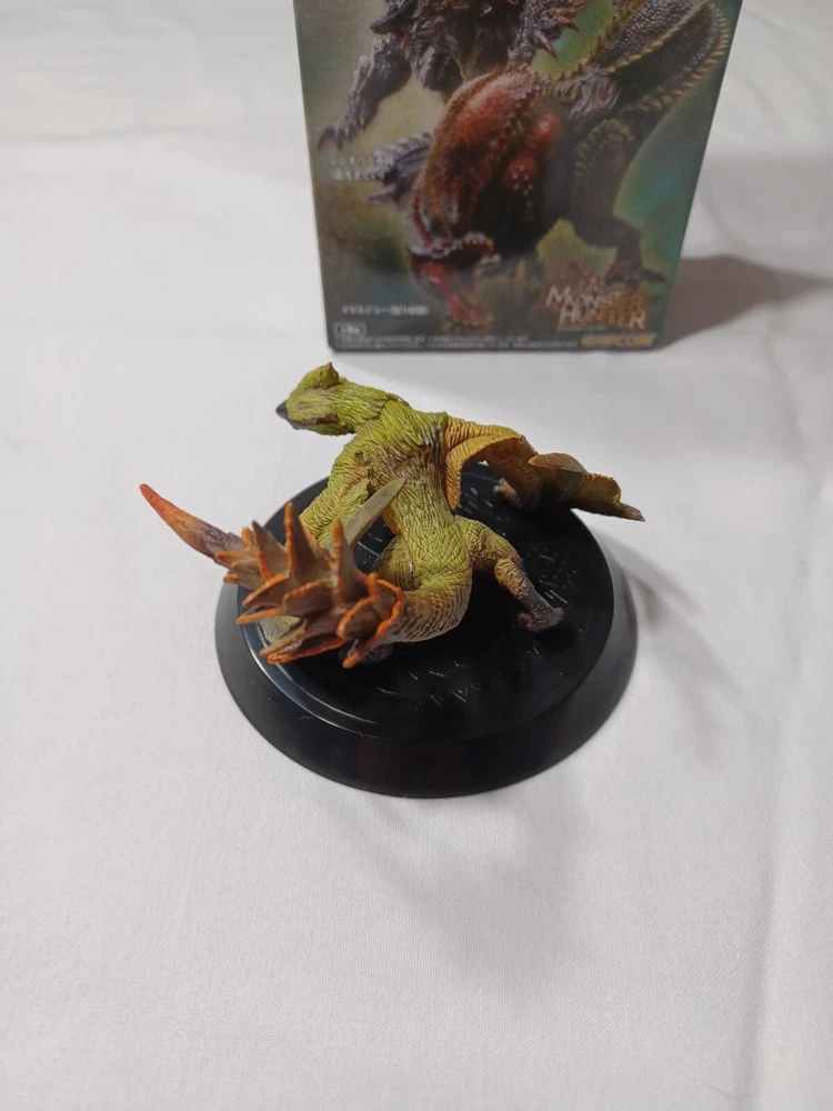 Monster Hunter Capcom Figure Builder Standard Model Volume 6 Condition: Opened, previously assembled and displayed. Sold as is, with original (damaged to open) box. Green Nargacuga - Green Swift Wyvern Introduced in Monster Hunter 3U A Nargacuga subspecies with mottled fur that allows it to blend into the foliage of verdant areas like the Flooded Forest and the Deserted Island. It is quite skilled in the use of its tail, the spikes of which are said to be extremely deadly. Item Number: 052