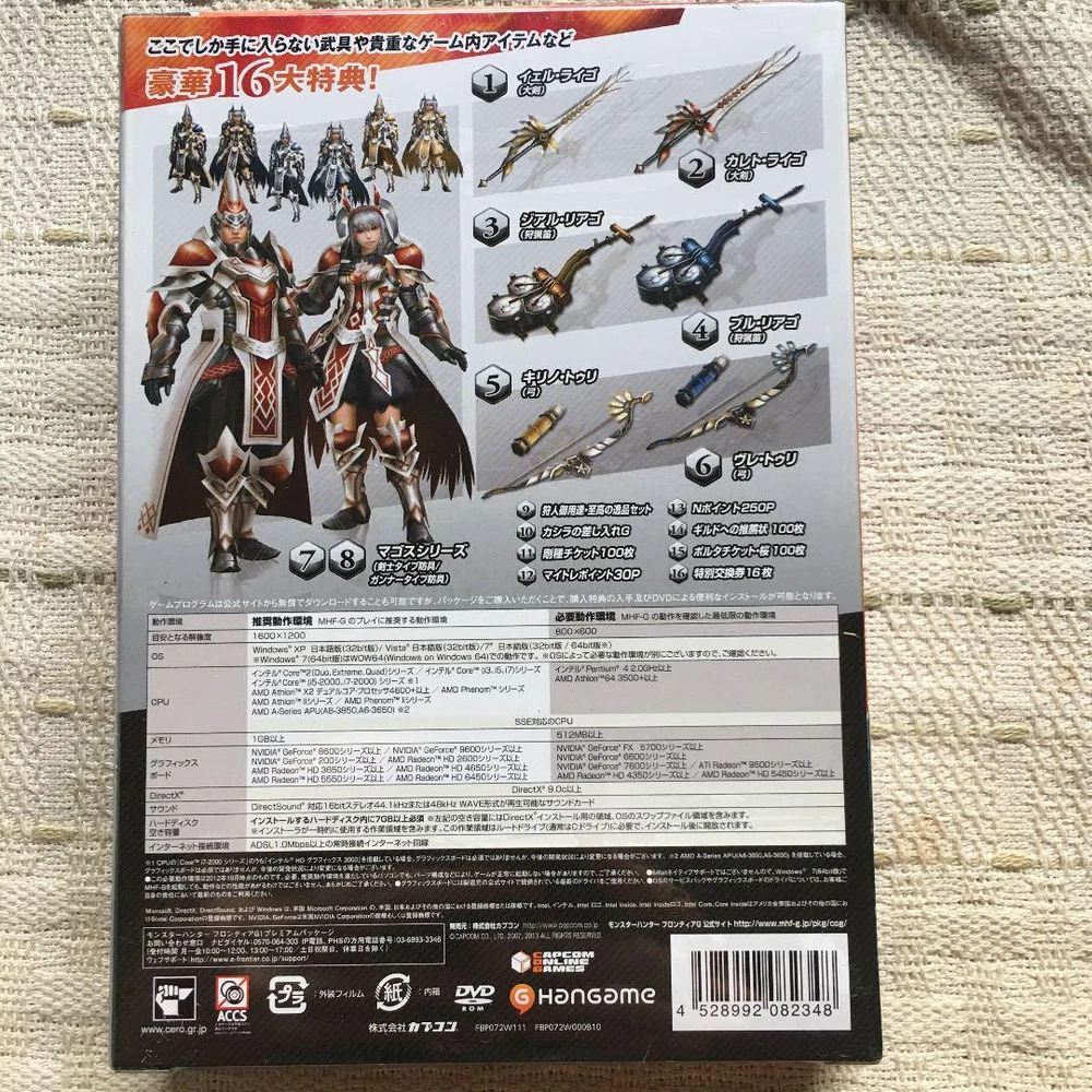 Item Title Monster Hunter Frontier G1 Premium Package Limited Edition F/S-411 from japan Ra Payment Supports managed payments Please pay within 5 days after auction is finished. About Us We are located in Japan. It's our pleasure to make you happy by proposing our recommend item. If you have any questions or request about items, please feel free to ask us. International Buyers - Please Note: -Import duties, taxes, and charges are not included in the item price or shipping charges. These charges are the buyer's responsibility. -Please check with your country's customs office to determine what these additional costs will be prior to bidding/buying. -These charges are normally collected by the delivering freight (shipping) company or when you pick the item up - do not confuse them for additional shipping charges. -We do not mark merchandise values below value or mark items as - gifts - The US and International government regulations prohibit such behavior. Thank you for your understanding.
