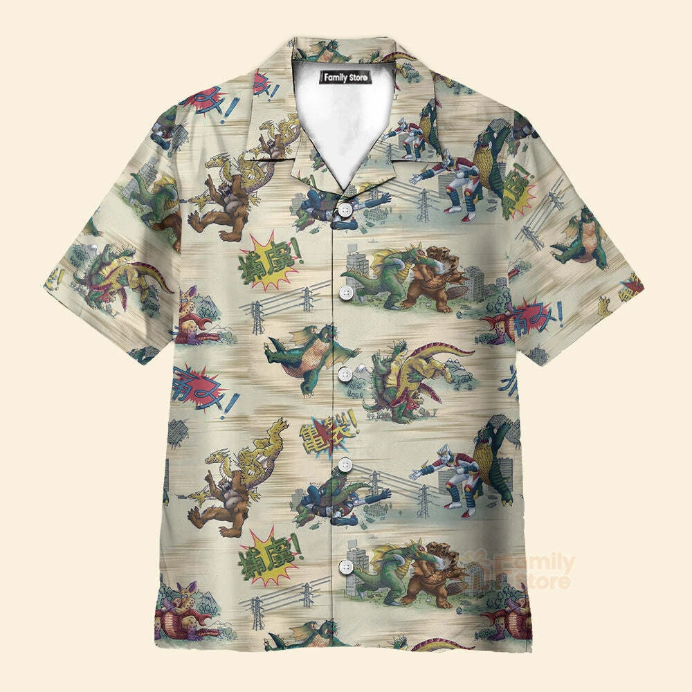 Monsters Kaiju Battles Hawaiian Shirt For Men US Size Summer Style NEW