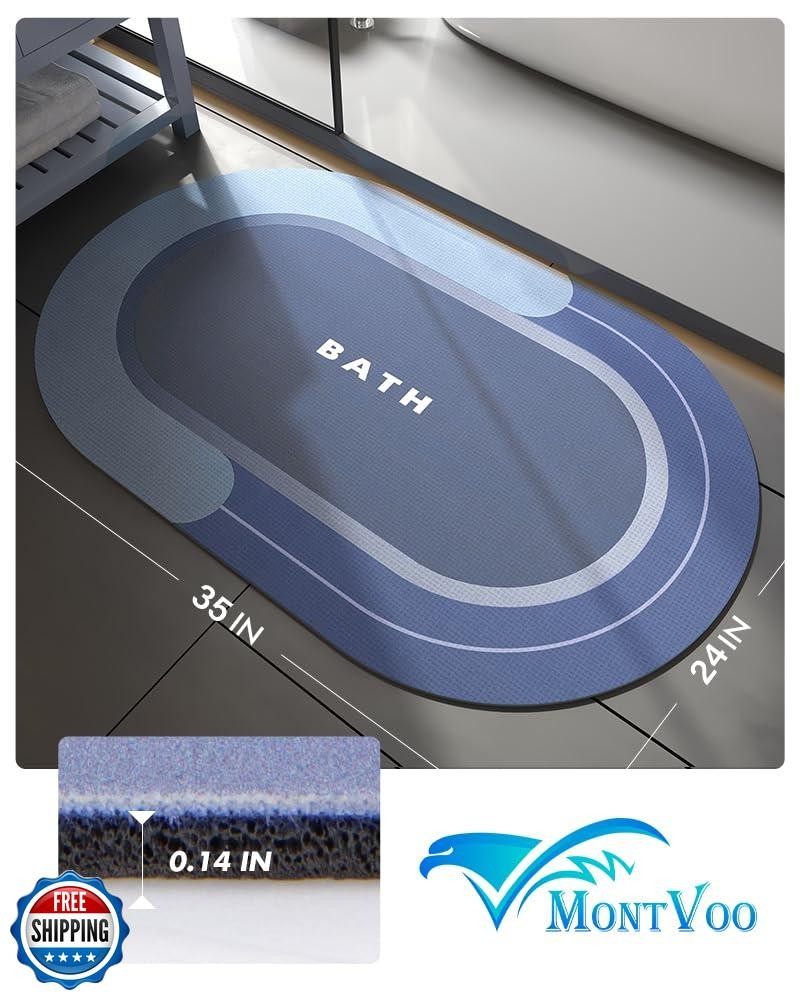 MontVoo Bath Mat - Non Slip, Quick Dry, Stain Resistant Bath Mat Rug for Bathroom Floor - Easy Care Shower Rug for Outside Bathtub - 24"x35" Navy Features Super Absorbent & Stain Resistant: Innovative advanced nano porous PU leather surface can absorb dripping water instantly without leaving any watermarks or stains. Super absorbent bath mat in front of bathtub, shower door or sink to keep bathroom floor clean, dry and safe. Easy Clean&Durable: Durable and easy clean than bath stone mat. No stains comparing to normal soft diatomaceous earth bath mat. No pilling, fading, shedding comparing to traditional microfiber bath rug Smooth surface designed to resist dirt and hair, friendly for family with pets. Simple wiping or rinsing can make your bath matt as well as new. Quick Dry Bath Mat: Numerous tiny pores within the bathroom mat allows water evaporates quickly in the natural air. Usually, watermarks can magically vanish within few minutes. Fast drying bath mat won’t be too damp for the next user. Anti-Skid & Anti-Leakage: Rubber backed non slip bath mat performs well in skid-resistance on smooth wet floor, comparing to other TPR or PVC backing. Durable rubber backing also stop water seeping underneath then flowing everywhere. Furthermore, the rubber bath mat won’t be smelly after being wet for long time. User-friendly Thin Bath Mat: Proper thickness is friendly for all users. Thin bathroom mat can minimize the risk of tripping hazards and is easy for doors or wheels to pass on. Different sizes available. Small bath mat 17”x27”,20”x32”. Large bath mat 17”x35”, 24”x35”. Long bathroom rugs runner 17”x59”, 24”x48”. Shipping Free & Fast Shipping: We offer free shipping to most of the USA with a normal delivery time of 3-7 days. However, due to the current situation, additional delivery time (up to 3 weeks) may be required for some items. Alternative Carriers: We may use alternative carriers (e.g., USPS, FedEx, UPS) to ensure your package arrives safely and on time. Due to the use of multiple carriers, we are unable to provide a tracking number automatically. Handling Time: Orders are processed and shipped within 1-2 business days of receiving cleared payment. Shipping Restrictions: Shipping to Alaska, Hawaii, Puerto Rico, Guam, and other US territories may incur shipping charges or delivery restrictions. Please contact us before ordering, or your order can be refunded/cancelled. State Restrictions: Certain items may not be shipped to California due to state regulations. Contact for Tracking Updates: If you require tracking updates or have any concerns about the delivery of your order, please feel free to contact us, and we will be happy to assist you. Return Policy 30-Day Hassle-Free Returns: If you are not completely satisfied with your purchase, you can return the item for free within 30 days of receiving it for a full refund or exchange. Easy Return Process: Contact us, and we will provide you with a prepaid return shipping label and detailed instructions. No Restocking Fee: There are no restocking fees for returns. However, the buyer is responsible for return shipping costs if the return is not due to a seller"s error. Refund Processing: Refunds will be processed within 1 business day of receiving the returned item in its original condition. Feedback Your feedback is extremely important to us. We strive to provide the best products and customer service possible. If you are satisfied with your purchase, please take a moment to leave us a positive review. If you have any concerns or issues with your order, please contact us before leaving negative feedback. We are committed to resolving any problems and ensuring your satisfaction. Contact Us If you have any questions or concerns, please feel free to reach out to our customer support team. You can contact us through the eBay messaging system. We are available Monday to Friday, 9:00 am to 5:00 pm EST, and we will do our best to respond to your inquiry within 24 hours. Thank you for supporting our small family business!