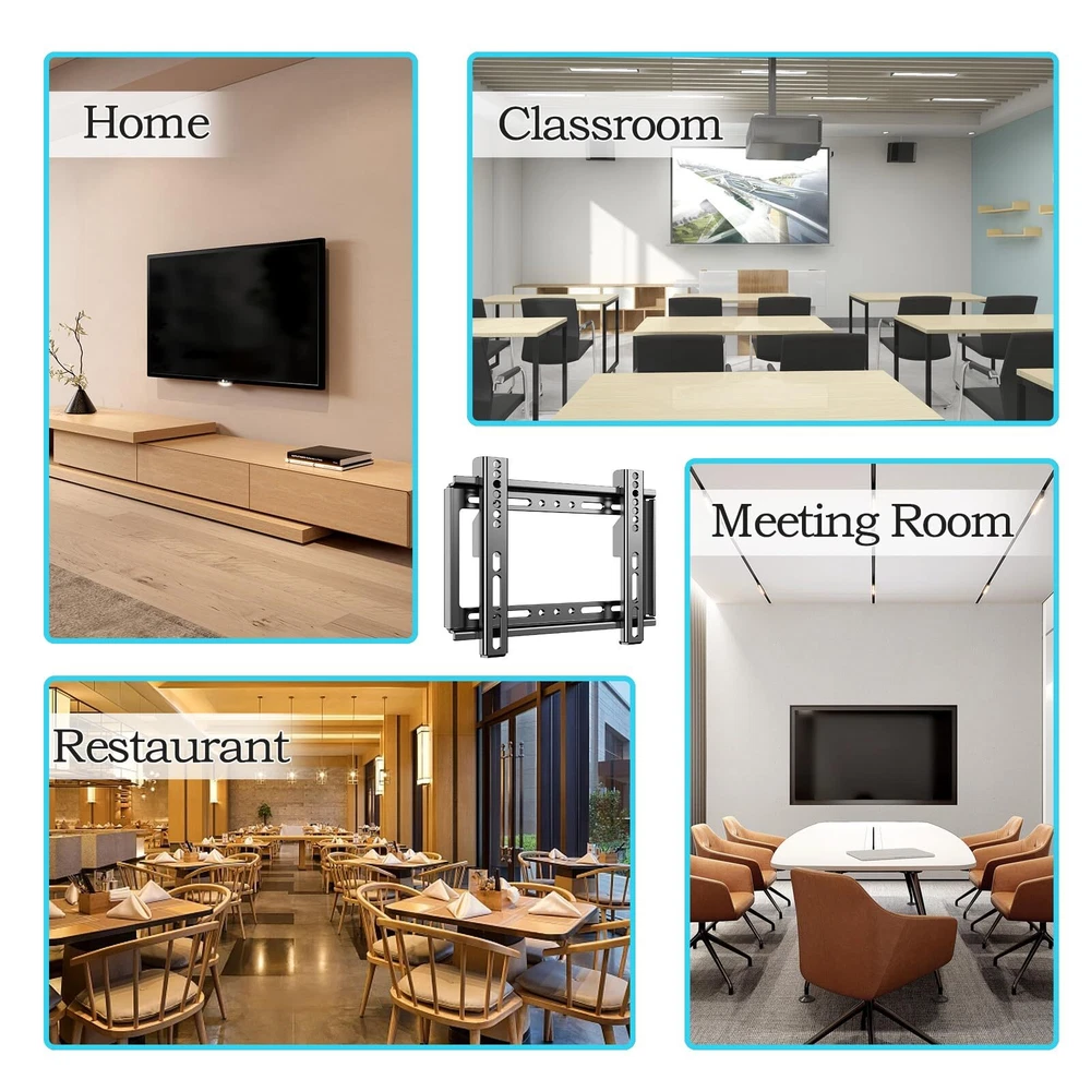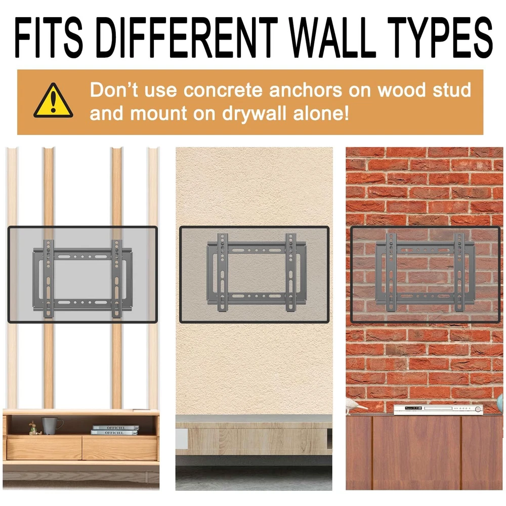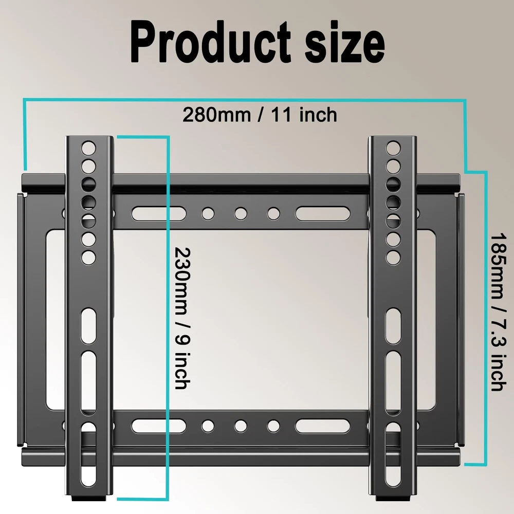 ASMXQY TV Wall Mount Bracket Low Profile for Most 14-42 inch LED LCD Flat Curved Screen TVs, Space Saving TV Bracket with Max VESA 200x200mm and 55 lbs Universal Monitor Mount Premium Quality Construction: Our Fixed TV Wall Mount is made from high-quality cold-rolled steel, offering reliable strength and durability. This sturdy construction ensures a secure and stable mounting for your TV, providing peace of mind. Space-Saving Design: With our Fixed TV Wall Mount, you can reclaim valuable floor space and create a clean and organized living area. Its sleek and slim profile ensures that your TV sits close to the wall, providing a seamless and space-saving solution. Universal TV Mount:Our fixed TV wall mount is ideal for 14-42 inch TVs that can hold up to 55lbs with VESA from 200x200mm. Easy Installation: Installing our Fixed TV Wall Mount is quick and effortless. It comes with all the necessary hardware and a clear step-by-step instruction manual, making the installation process simple, even for beginners. Enjoy hassle-free setup and mounting in no time. Note:Do not install separately on dry walls, Feel free to contact us if you have any questions.
