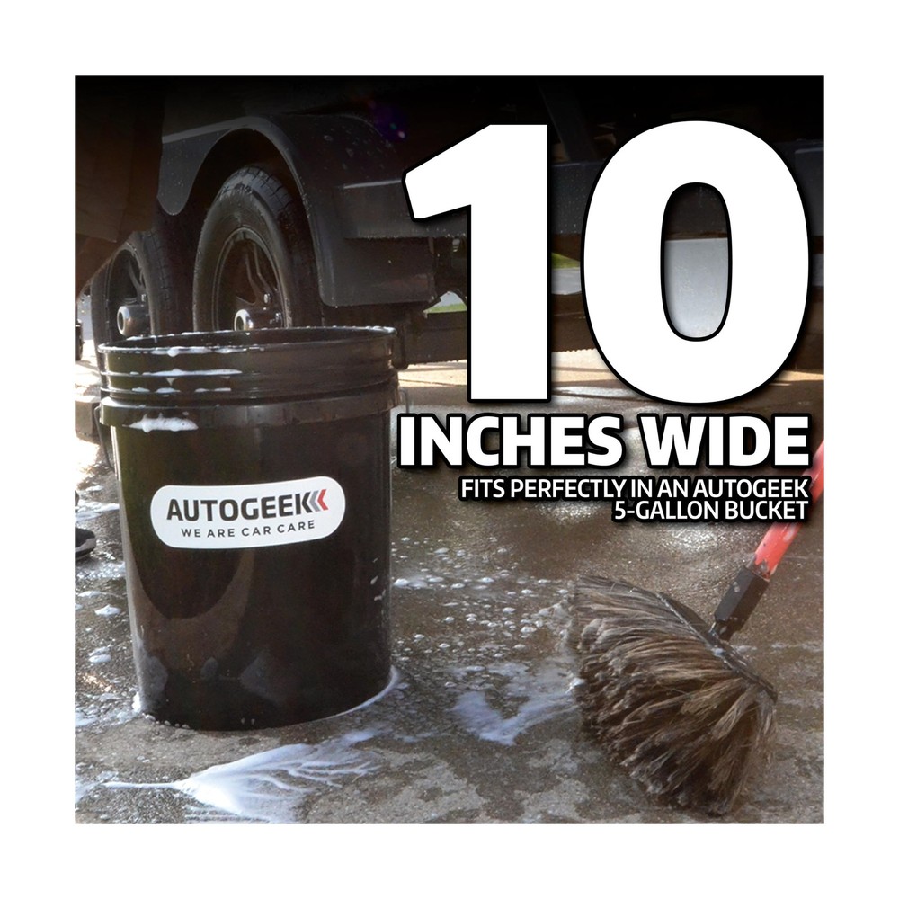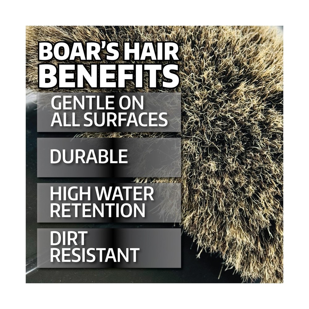 Montana Boar's Hair Wash Brush PLUS | Premium Curved Bristles for Effective Cleaning | Safely Lifts Dirt Without Scratching Paint or Clear Coat | Durable & Versatile for Cars, Trucks & RVs | MB-403 Description The Montana Original Boar's Hair Wash Brush PLUS is destined to find a home in many garages thanks to its user-friendly design. This brush features a curved base that creates a fan of soft bristles. Now you can wash the upper portions of large vehicles with greater ease. Features: CURVED, FAN-SHAPED DESIGN: The brush features a unique curved base that creates a fan of soft bristles, allowing for better access to the upper portions of large vehicles and a more comfortable washing angle. 100% BOAR'S HAIR BRISTLES: Made entirely from soft, durable boar's hair, which is gentle on surfaces and retains its shape when wet, providing a scratch-free wash. ENHANCED SAFETY: The fan shape helps prevent the base of the brush from coming into contact with the vehicle, reducing the risk of accidental scratches or damage during washing. LARGE CONTACT AREA: The curved design increases the contact area between the bristles and the vehicle, making it easier to clean large vehicles like trucks, SUVs, boats, and RVs. EXCELLENT WATER RETENTION: Boar's hair bristles naturally hold more soapy water compared to synthetic materials, ensuring a thorough and efficient wash. Product Details: Brand: Autogeek Color: Black Shape: Oblong Bristle Material: Boar Handle Material: Wood Is Discontinued By Manufacturer : No Package Dimensions : 12.4 x 6.57 x 4.69 inches; 1.41 Pounds Best Sellers Rank: #487,254 in Automotive (See Top 100 in Automotive) #1,365 in Cleaning Brushes & Dusters #1,365 in Cleaning Brushes & Dusters Customer Reviews: 4.2 4.2 out of 5 stars 57 ratings Delivery We Do Not Ship Outside of the Continental US. Return Policy All items qualify for returns within 30 days of receipt. Seller is responsible for return shipping on any item that is not damaged. Feedback We take our reputation seriously, we buy and sell online, so we understand the value of trust. If you are unsatisfied with your order, please contact us and we will work with you to resolve it to your satisfaction.