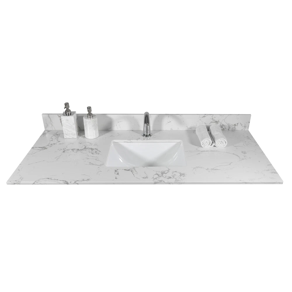 The vanity tops are made of beautiful Engineered stone. All exterior sides are polished for a luxurious look. Each model is complemented with a ceramic Rectangle undermount sink. The matching backsplash is included in each package. Product incude : Stone vanity top + backsplash+ceramic sink [DIMENSIONS] Exterior Dimension 43 inch wide x 22 inch,deep Fits Most Standard 42-in W x 21-in D vanity cabinet 4 inches center faucet holes [Material] Enginnered tone Stone top Size:43X22x3/4 inch [Elegant & Stylish Top] Warmly elegant and stylish Carrara marble vanity top complement most Bathroom designs and coordinate with both light and dark cabinetry High-end and classic natural stone top Pre-sealed and Polished for added protection [Easy to Installation] Top p... Bathroom Montary 43x22"bathroom stone vanity top engineered stone carrara white marble c The vanity tops are made of beautiful Engineered stone. All exterior sides are polished for a luxurious look. Each model is complemented with a ceramic Rectangle undermount sink. The matching backsplash is included in each package. Product incude : Stone vanity top + backsplash+ceramic sink [DIMENSIONS] Exterior Dimension 43 inch wide x 22 inch,deep Fits Most Standard 42-in W x 21-in D vanity cabinet 4 inches center faucet holes [Material] Enginnered tone Stone top Size:43X22x3/4 inch [Elegant & Stylish Top] Warmly elegant and stylish Carrara marble vanity top complement most Bathroom designs and coordinate with both light and dark cabinetry High-end and classic natural stone top Pre-sealed and Polished for added protection [Easy to Installation] Top pre-drilled for faucet Assembled stylish rectangular white vitreous china under mount bowl with safety overflow hole This top is perfect for quick and easy remodels Obtain the beauty and durability of marble without hiring a professional [PACKAGE INCLUDED] Vanity top with assembled rectangular under mount bowl matching 4inch high Backsplash Besides extremely solid package - very firm carton box with foam is used to transport top making sure a safe delivery (Attention) Faucet and side splash NOT included Item Specifics Item Length As described Item Width As described Item Height As described Item Weight As described Color Grey Material Stone Type Bathroom Vanities Brand Unbranded Payment If you do not have a PayPal account, to get started and buy your first item with us is very easy. Simply click on the 'Buy It Now' button and follow the eBay checkout steps. Select PayPal as the payment method you then will be given the chance to enter your card details in to PayPal's secure checkout in order to pay for your order. Shipping 1. Your purchase is shipped directly to you as soon as we have received your cleared payment. 2. Normally all of parcels would be shipped within 3days(From Monday to Saturday). 3. We will send information on eBay or email if the parcel was delayed due to our holiday. 4. We provide three kinds of shipping for choice. Shipping way depend on delivery address. Returns If an unit is received defective, of course we take it back or replace it. If the unit is received as expected, we must charge for our expenses if you want to send it back. We have to charge for the work of handling, retesting and restocking. Contact Us Dear buyer, Thank you for visiting my store! Our warehouses are located in many regions around the United States. According to the customer's delivery address. Use USPS/UPS/DHL logistics transportation service. Prioritize the best quality logistics solutions to transport packages. Ensure package delivery time, At the same time. Have any after-sales problems, Feel free to contact us. At your service Bathroom DESCRIPTION PAYMENT SHIPPING RETURN POLICY CONTACT US Montary 43x22"bathroom stone vanity top engineered stone carrara white marble c The vanity tops are made of beautiful Engineered stone. All exterior sides are polished for a luxurious look. Each model is complemented with a ceramic Rectangle undermount sink. The matching backsplash is included in each package. Product incude : Stone vanity top + backsplash+ceramic sink [DIMENSIONS] Exterior Dimension 43 inch wide x 22 inch,deep Fits Most Standard 42-in W x 21-in D vanity cabinet 4 inches center faucet holes [Material] Enginnered tone Stone top Size:43X22x3/4 inch [Elegant & Stylish Top] Warmly elegant and stylish Carrara marble vanity top complement most Bathroom designs and coordinate with both light and dark cabinetry High-end and classic natural stone top Pre-sealed and Polished for added protection [Easy to Installation] Top pre-drilled for faucet Assembled stylish rectangular white vitreous china under mount bowl with safety overflow hole This top is perfect for quick and easy remodels Obtain the beauty and durability of marble without hiring a professional [PACKAGE INCLUDED] Vanity top with assembled rectangular under mount bowl matching 4inch high Backsplash Besides extremely solid package - very firm carton box with foam is used to transport top making sure a safe delivery (Attention) Faucet and side splash NOT included Item Specifics Item Length : As described Item Width : As described Item Height : As described Item Weight : As described Color : Grey Material : Stone Type : Bathroom Vanities Brand : Unbranded Payment Shipping Returns Contact Us If you do not have a PayPal account, to get started and buy your first item with us is very easy. Simply click on the 'Buy It Now' button and follow the eBay checkout steps. Select PayPal as the payment method you then will be given the chance to enter your card details in to PayPal's secure checkout in order to pay for your order. 1. Your purchase is shipped directly to you as soon as we have received your cleared payment. 2. Normally all of parcels would be shipped within 3days(From Monday to Saturday). 3. We will send information on eBay or email if the parcel was delayed due to our holiday. 4. We provide three kinds of shipping for choice. Shipping way depend on del