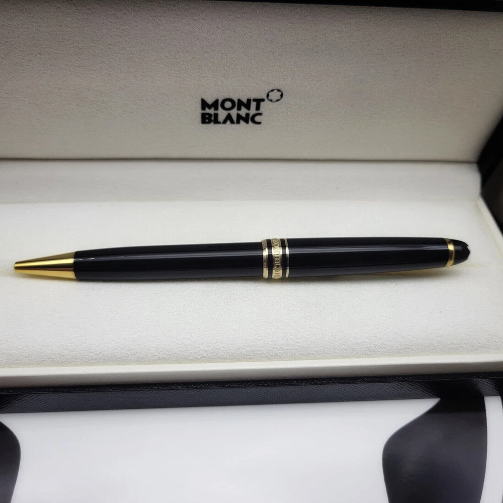 Montblanc Pen #Montblanc #Germany #LuxuryPens #WritingCompanion #BlackFridaySale#LuxuryGiftsAmerica #Montblanc #BlackFriday #MadeInGermany #FineWriting Deals on holiday giftsShop DealsThis Montblanc M164 Meisterstuck Classique Ballpoint Pen is an exceptional writing instrument crafted in Germany. With its elegant design and gold trim features, this pen is perfect for those who appreciate luxury and style. The pen writes in black ink and is made of high-quality resin material, ensuring a smooth and comfortable writing experience. This ballpoint pen can make a great addition to your collection or a thoughtful gift for someone special. It is not personalized and is not a vintage item. Whether you are a pen enthusiast or simply looking for a high-quality writing instrument, this Montblanc pen is a great choice.Buy from an Authorized Dealer. All our pens are Guaranteed Authentic. Product Description Collection: Montblanc Meisterstuck Condition: New Product Details Color: Black Material: Body and cap of black precious resin Filling System: Montblanc Refill Contents Montblanc Pen Outer Packaging Service Guide #Montblanc #Meisterstuck #RollerballPen #BlackInk #GoldTrim #RollerballPen #Germany #Resin #DealAlert #Savings #Blackfriday Sales