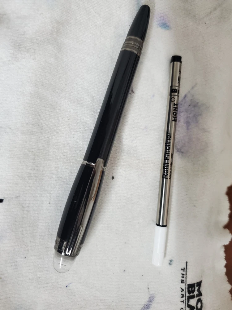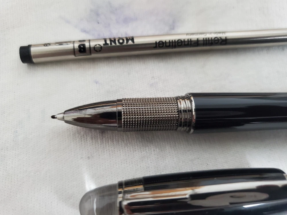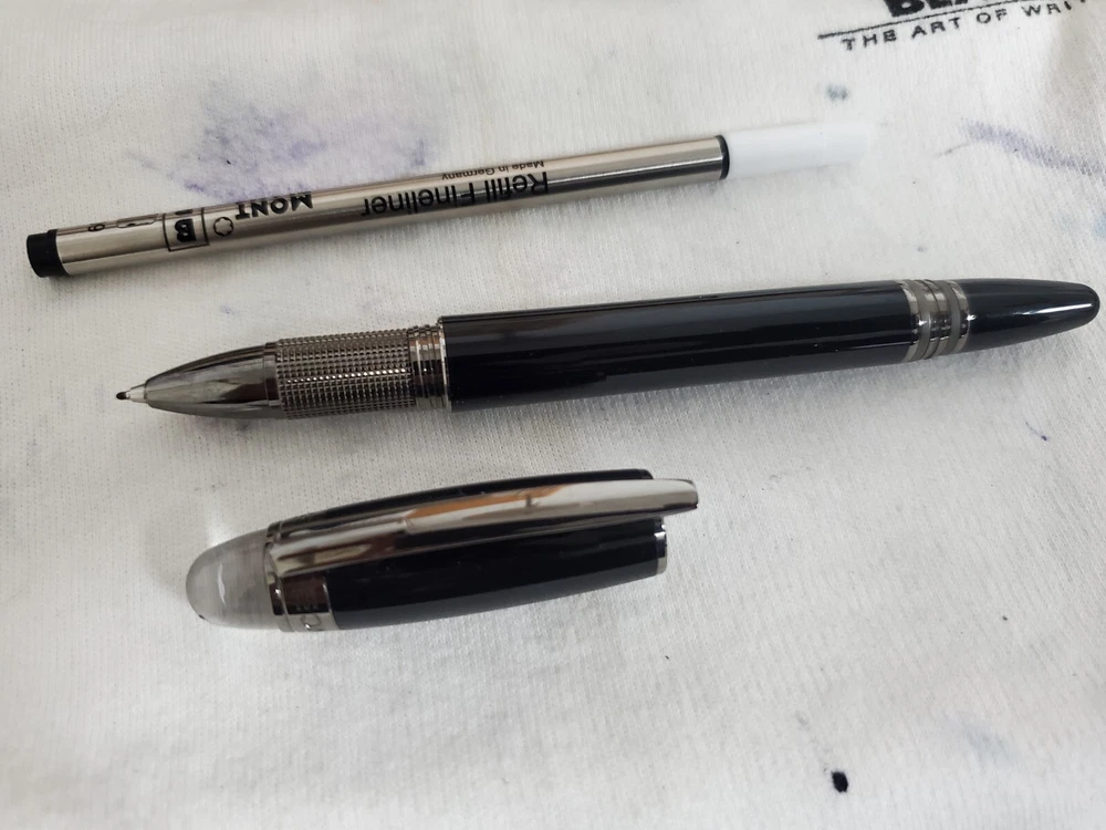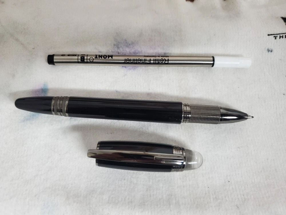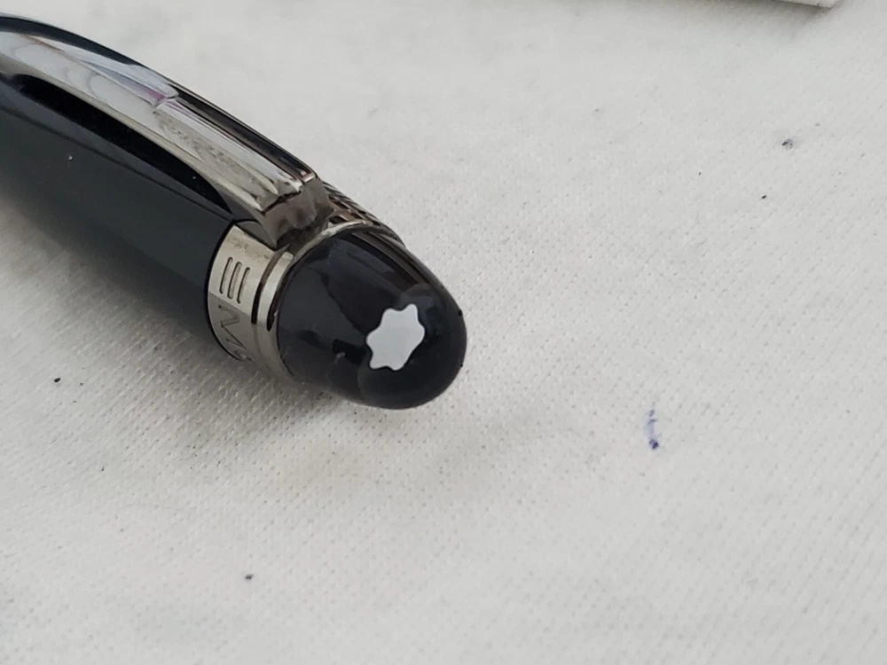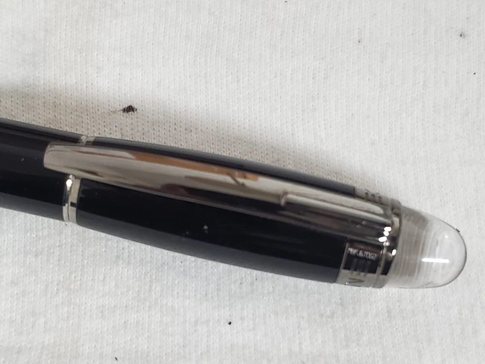 Montblanc starwalker midnight Rollerball/Fineliner pen There is hairline crack beside the clip. It's hard to see. Check the photo. Pen is in very good condition. It comes with a Fineliner refill