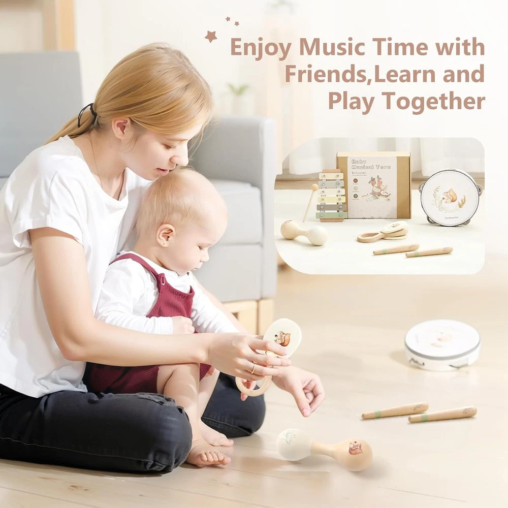 πΌ Montessori Toddler Musical Instruments Set Inspire a love of music early with this charming wooden musical instrument set designed specifically for toddlers aged 18 months and up! This 4-piece set encourages creativity, boosts coordination, and delivers hours of safe, musical fun. π΅ Whatβs Included: This beautifully crafted music set features: πΉ Xylophone β Bright, melodic tones to explore pitch π₯ Hand-Clapping Tambourine β Fun, rhythmic sound play πͺ Wooden Sand Hammer (Maracas) β Stimulates auditory senses πΆ Wooden Clapper β Easy for tiny hands to grip and shake Perfect for solo play or interactive jam sessions with family and friends! π± Natural, Safe, and Kid-Friendly β Made from 100% natural wood β Coated with organic, water-based paint β BPA-free, non-toxic, and safe for toddlers β Smooth edges and durable design ensure worry-free play Designed in stylish neutral tones, this set is suitable for both boys and girls β a great fit for modern nurseries and Montessori classrooms. π§ Educational Benefits: Enhances hand-eye coordination Boosts sensory development and auditory skills Encourages creativity, imagination, and early musical literacy Builds confidence through self-expression Whether itβs tapping, shaking, or clapping β every sound helps your child grow. π Perfect Gift for Any Occasion Ideal for: π Birthdays π Christmas π Parties βοΈ Travel or picnic play Kids can take these portable music toys anywhere for instant fun! β Why Parents Love It: Montessori-inspired Gender-neutral & aesthetically pleasing Safe & durable for everyday play Encourages parent-child bonding through music π Let the rhythm spark your childβs joy and creativity β order your musical set today!