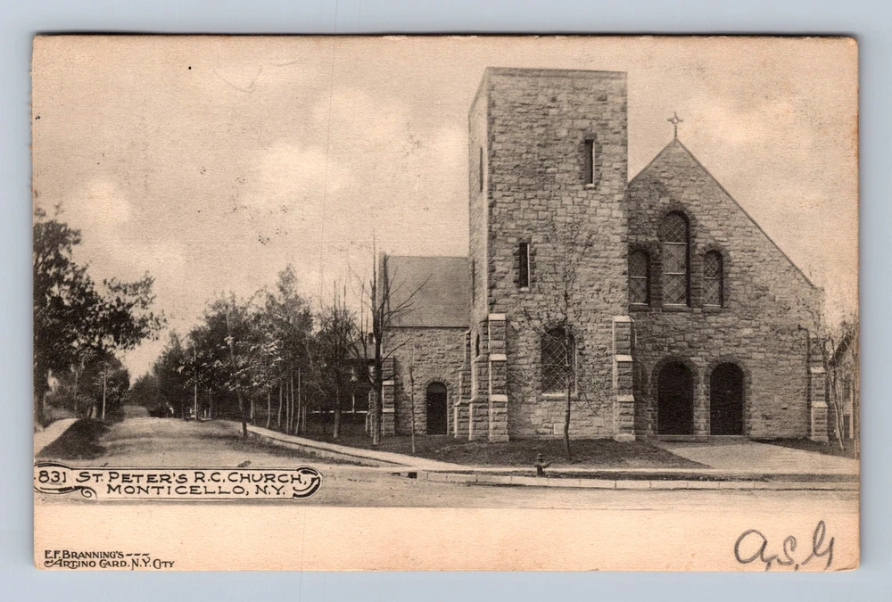 Monticello NY-New York St Peter's RC Church Vintage c1906 Postcard Card View PC