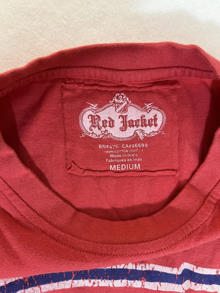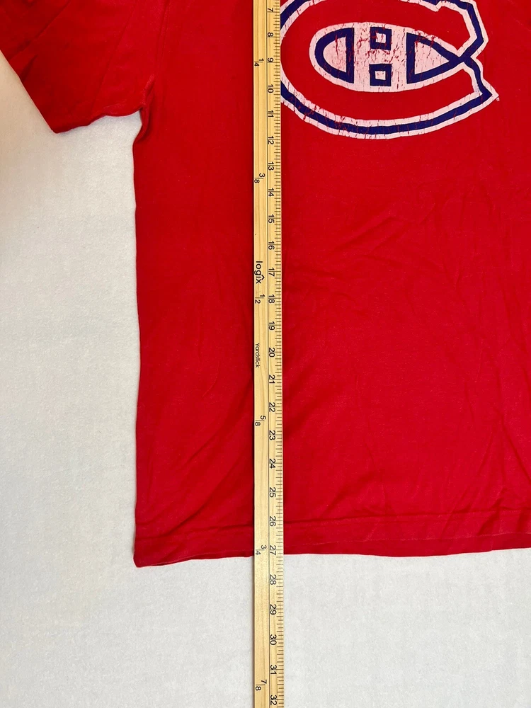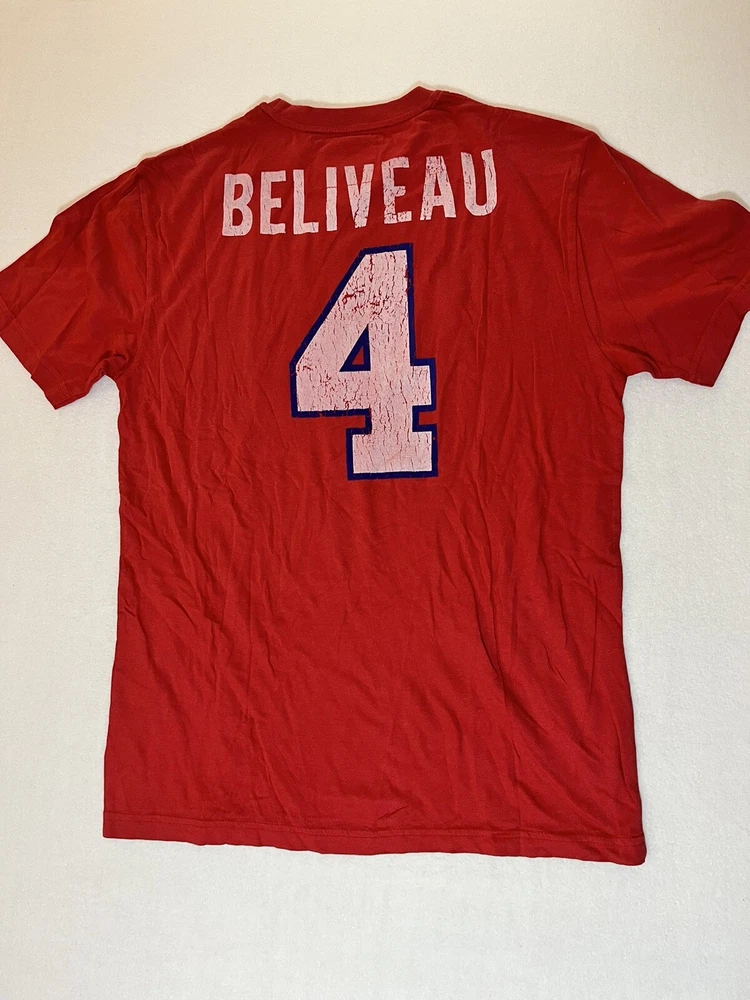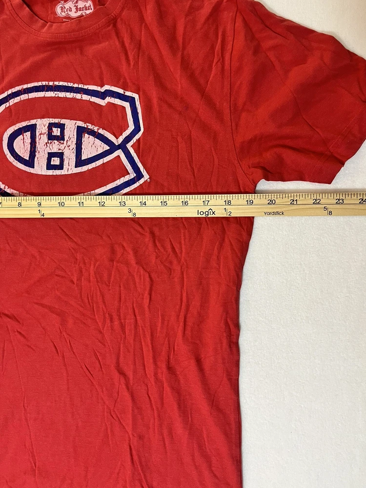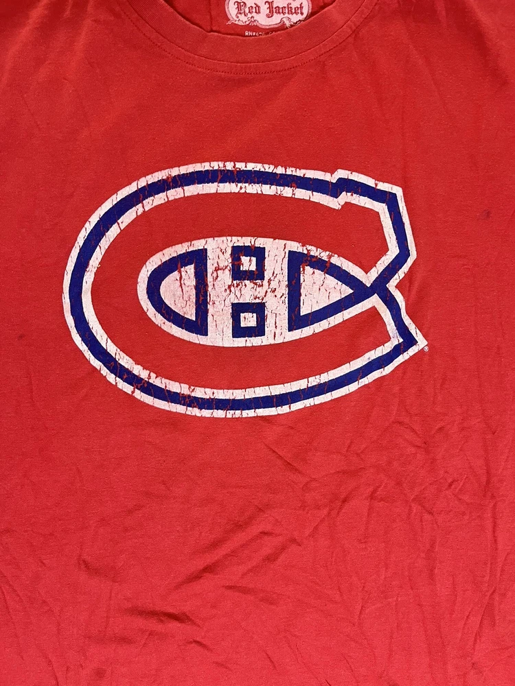 General Notes Color(s) may slightly differ due to monitor settings and lighting. Please check out our other listings as you may be surprised at what you find. Please read the item description and view all the photos. The photos will provide a good representation of the item (see the first note above about colors). Any flaw(s) will have a dedicated photos to show the flaw(s) You may want to compare the measurements of this item to something you already have that fits. If you experience a problem with your item, please contact us so that we can attempt to fix the issue promptly. Red Jacket Brand Beliveau Canadiens Distressed Graphics Red T-Shirt Men’s Medium New Company: Red Jacket Condition: New Without Tags Color: Red tee with Blue and White distressed style graphics Style: Regular Fit Sleeves: Short Sleeve Collar: Crew Neck Material: 100% Cotton Size: M (Medium) Sleeve Length: Short Sleeves Shirt Length: 27” (from base of collar to bottom of shirt) Shirt Width: 19” (from pit to pit) Wash Instructions: Machine Wash Signature Montreal Canadiens Logo on front hit with distressed design BELIVEAU and #4 printed on back with the same distressed design Red Jacket Brand Tee with soft, comfortable cotton material This one is New Without the Tags See photos for measurements and shirt details and appearance Measurements are approximate (see photos) Item Description from the Seller Add this Beliveau #4 Tee Jersey to your NHL collection and show your support for the Montreal Canadiens in style. This tee has the pre-washed material with distressed design printed graphics on front and back. This one is Brand New Without the Tags. Save big from retail and Buy It now, here! Inv. #0359