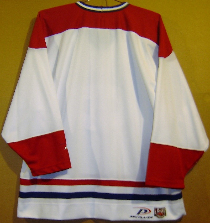 This is a white knit medium weight knit jersey with the traditional Canadians crest sewn on the front. Blue neck stripe with a center white stripe. Red shoulders. The ends of the sleeves are red. Red, white and blue waist stripes. No numbers. No fight strap. On the back hem is the embroidered Eastern Conference patch as well as the Pro Player emblem. Tagged in the neck with the Pro Player tag as well as an Extra Large size tag. It dates back to 2006 or earlier and it remains in very good condition. Buyer to pay $12.00 for shipping. ===== Please be aware that International shipping could cost considerably more. ===== Check out my feedback and buy with confidence! Thank you!!!