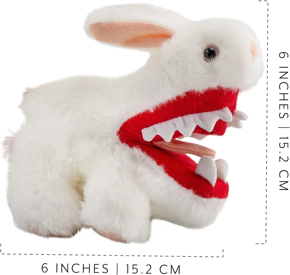 Monty Python Killer Rabbit Plush – 6-Inch Cuddly Terror with Pointy Teeth Product Features: Hilariously Adorable: Inspired by Monty Python and the Holy Grail , this 6-inch plush baby rabbit may look cuddly, but beware of his "killer" personality! Complete with funny, exaggerated "sharp" pointy teeth (not really sharp). Perfect Gift for Fans: A must-have collectible for fans of the classic comedy or anyone who appreciates a touch of mischief in their gifts. High-Quality Details: Made with premium fabric and featuring detailed facial features, ears, feet, and striking pink marble eyes for a playful, "scary" effect. Compact Size: At just 6 inches, this plush is great for desks, shelves, stockings, or as a quirky addition to your plush collection. Safe for All Ages: Safety tested and suitable for ages 3 and up. Why You'll Love It: This killer rabbit plush is not only a hilarious nod to one of Monty Python's most iconic scenes, but it’s also great for pranking friends, entertaining kids, or even terrorizing knights in your imagination! Other Fun Collectibles Available: Looking to complete your collection? Check out other fun Monty Python merchandise like: The Holy Hand Gren@de of Antioch Plush Large Killer Rabbit with Big Pointy Teeth Black Knight Plush Horse Action Figure Tim the Enchanter Hat Rabbit with Big Pointy Teeth Slippers Dead Parrot Slippers Don’t miss out on this officially licensed Monty Python Killer Rabbit Plush—grab yours today! Killer baby rabbit! This 5-inch Plush bunny may be cuddly and cute, but he's a killer. Just look at the chompers on this guy! From that wild and wacky movie Monty Python and the Holy Grail, comes this hilarious Plush baby rabbit with sharp pointy teeth. Well, they're not really that sharp. But you can still use him to terrorize your kids, pets, and spouse! Officially licensed from MONTY PYTHON, miniature size, perfect for a stocking stuffer or desktop gift Made from high quality fabric with detailed mouth, nose feet, ears and scary pink marble eyes Little Version: 6 inches long, safety tested for ages 3 & up Great for fans of 'Monty Python and the Holy Grail’ and for people who hate knights Also available from : The Holy Hand Gren@de of Antioch Plush, Large Killer Rabbit with Big Pointy Teeth, Black Knight Plush, Horse Action Figure, Tim the Enchanter Hat, Rabbit with Big Pointy Teeth Slippers, Dead Parrot Slippers