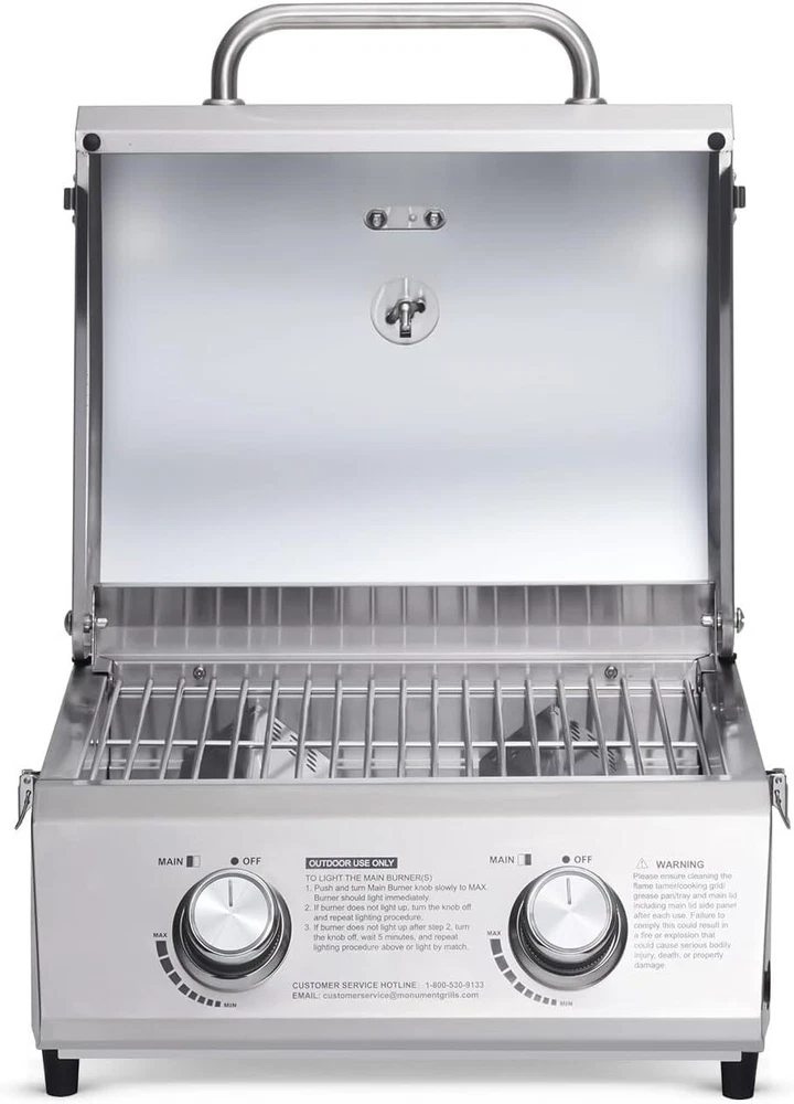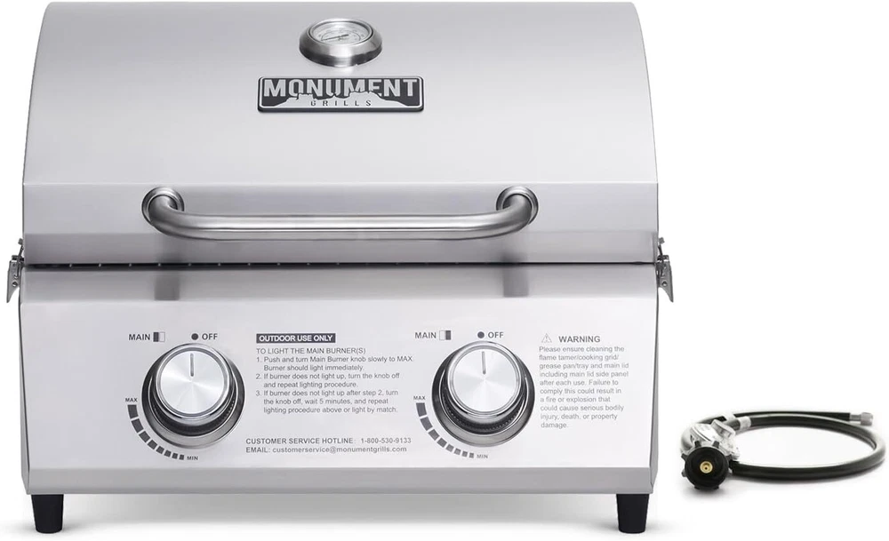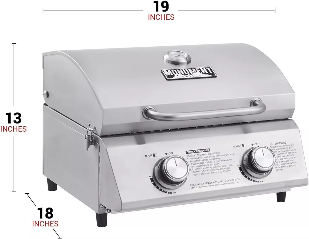 EXPERT GRILLING LID - When grilling large pieces of meat like a thicker steaks, ribs, our high lid could help to cook like an oven. GREAT COOKING AREA - 207 sq.in of total cooking area offers plenty of grilling space for camping or outdoor cooking. 15,000 BTUS COOKING POWER -Two main burners with total 15,000 BTUs deliver fast and even heat and great grilling experience STAINLESS STEEL GRATES & BURNERS - Stainless Steel cooking grates and 2 burners are designed for fast and even cooking, the dimension of the cooking grate is 15.43x12.91 inches BUILT IN THEROMETER - Built-in center mounted thermometer monitors temperature inside the grill. Propane tank is not included with the grill On Oct 10, 2024 at 02:13:39 PDT, seller added the following information: On Nov 21, 2024 at 23:27:38 PST, seller added the following information: