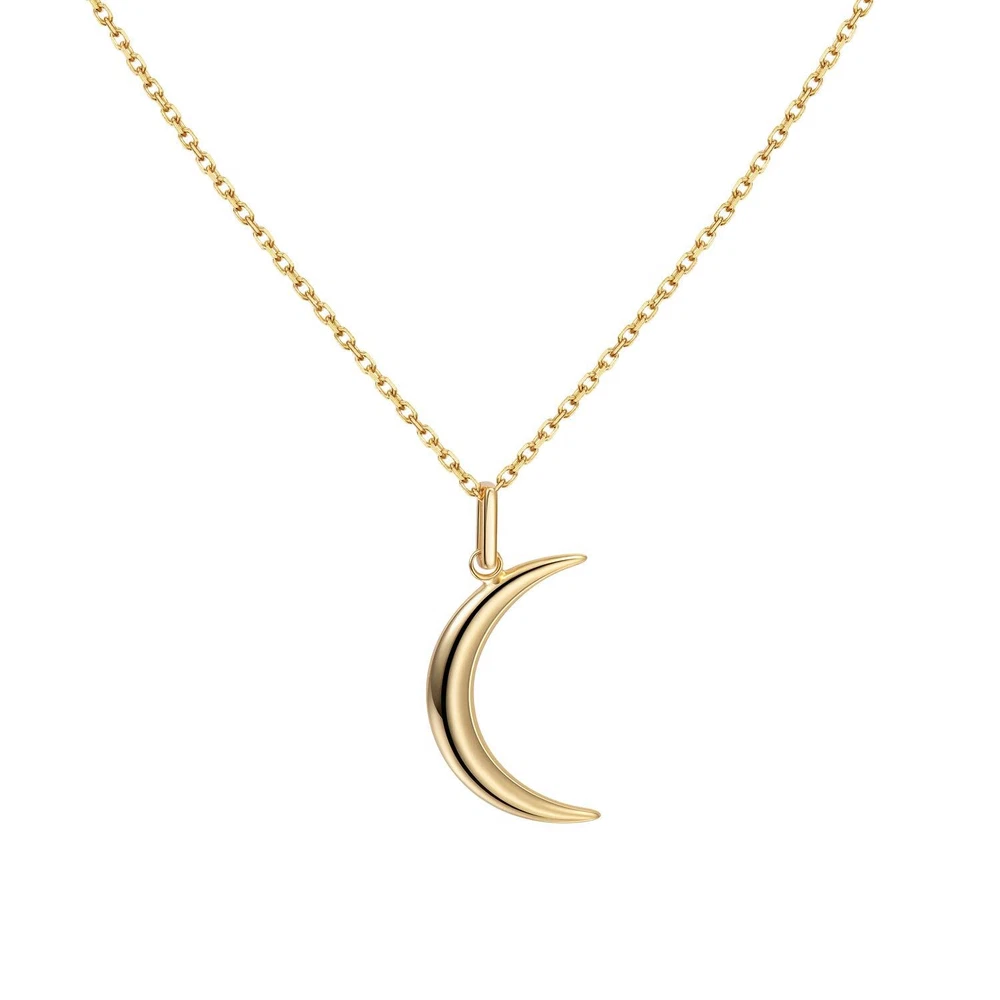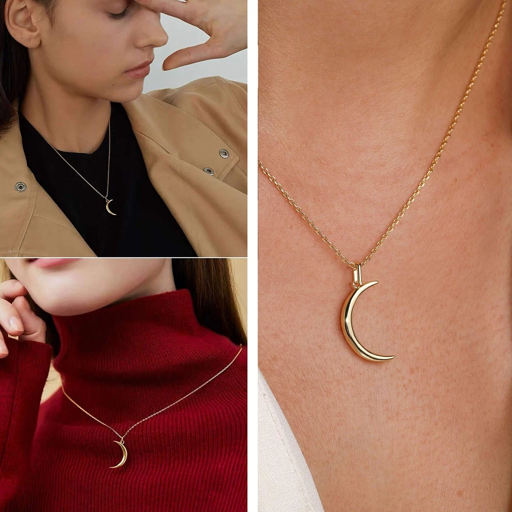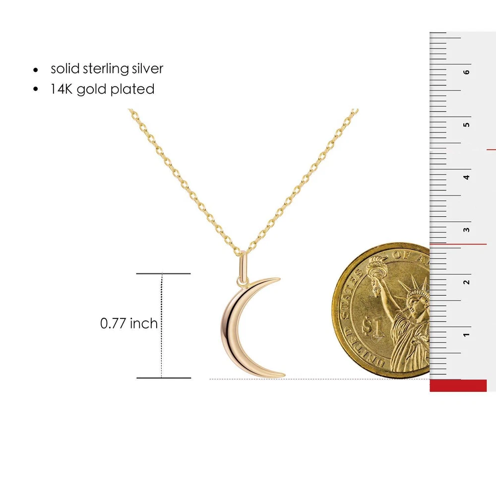 🌙Design🌙Quality dainty necklace detailed with crescent moon pendant, not too thin and small, the perfect new moon shape confirmed after several times of changing drawing and mold, a sense of joy that is as hard to hide. 🌙Material🌙This moon necklace made of solid sterling silver, 14k gold plated, high shine polish, lobster claw clasp. 🌙Size🌙 The dainty necklace length adjustable from 15.7 to 18.5 inches with extender, moon pendant 0.77 inches. You can wear it alone as a simple dainty necklace or layered necklace and match it with other choker necklaces 🌙GIFT PAKAGING🌙 Packaged in elegant presentation box, perfect for giving or keeping - Great for birthday gift, anniversary gift for her, holidays, graduation, mother's day, Christmas day, Valentine's Day or other occasions 🌙MAINTAIN🌙 To keep the high quality jewelry's shine longer, avoid water pools & spas, avoid cosmetics and other chemicals, take off when sleeping, exercising, or doing other physically strenuous activities, sealed with separate storage in dry place and wear it with love & intention