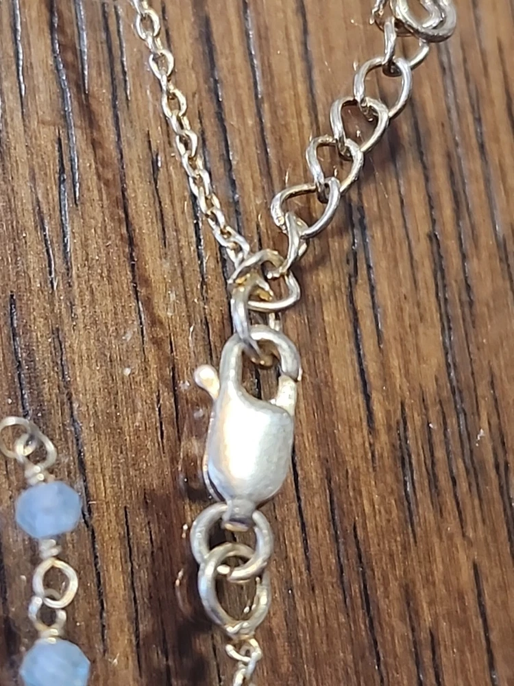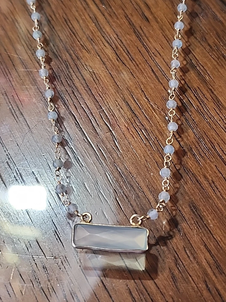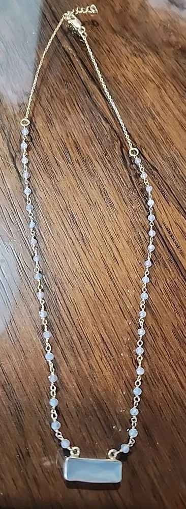 Moonstone Bar Necklace 17" Adjustable Rosary Style Chain Yellow Gold over 925