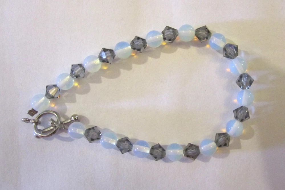 DETAILS This listing is for a gorgeous high quality handmade genuine Swarovski crystal element and Moonstone silver toggle clasp bracelet. This is a true beauty and of very high quality!! The bracelet is made with 6mm black diamond Swarovski crystal elements and 6mm Moonstone gemstone beads. This item is NOT Swarovski brand. The bracelet measures approx. 7.5 inches in length and features a silver toggle clasp. Everyone will think you paid a fortune for this beauty and you will get tons of compliments!!!! It would also make a great gift IF you can part with it!! FEEDBACK POLICY DUE TO A LARGE NUMBER OF BUYERS THAT NEVER RETURN FEEDBACK...I WILL ONLY GIVE IT AFTER THE BUYER DOES. WHEN THE BUYER RECEIVES THEIR ITEM AND LEAVES ME POSITIVE FEEDBACK, I PROMISE TO RETURN THE FEEDBACK TO THEM. SOMETIMES IT TAKES ME A FEW DAYS BUT I WILL GET IT TO YOU!! IF THE BUYER IS NOT HAPPY WITH SOMETHING I ASK THEM TO PLEASE CONTACT ME BEFORE LEAVING FEEDBACK AND GIVE ME THE FAIR CHANCE TO MAKE THINGS RIGHT!! I HOPE THAT MY BUYERS WILL UNDERSTAND AND I THANK YOU!! QUESTIONS Ask any question that you may have. If you are not happy with this item when you receive it.... please contact us instead of leaving a negative feedback. We are always willing to work anything out. Our customers come first and we want them to be happy. We always promise excellent customer service. A happy customer comes back!! We stand 100% behind our products and 100% guarantee all of them!! PAYMENT DETAILS USA and OUTSIDE USA: We accept PAYPAL payments. We do combine shipping on multiple items IF all items are paid within one payment. PLEASE WAIT FOR COMBINED SHIPPING INVOICE!! If you cannot pay with Paypal immediate, please let us know right away. This will keep us from bothering you with tons of invoices because we will know when to expect your payment!! Items MUST be paid for within 4 days. If not, We will relist the item and file a Non-Paying Bidder complaint. We truly hope that all transactions can be smooth and pleasant!! PLEASE understand that shipping is more than just stamps or postage. We do combine shipping on multiple items IF all items are paid within one payment. PLEASE WAIT FOR COMBINED SHIPPING INVOICE!! I try and ship items out within 24-48 hours after payment is received. I am very careful to package items extremely well which requires alot of high quality packing materials. Please also understand that no matter how fast I ship...the postal service is out of our control. Thank you! FOR RETURNS If you feel that you are not happy with an item, please CONTACT ME before leaving feedback. If the item is broken...I require return and will refund your payment in full when the item gets back to me. If you just dont want the item and choose a REFUND please understand that I cannot issue it until I have the item back in my home and it is in the EXACT shape as when it left. You will need to return the item at your own expense and refunds do not include shipping unless the item is broken or not as described. This is the only way that I can recover some of my costs that I would otherwise lose. THANK YOU!!