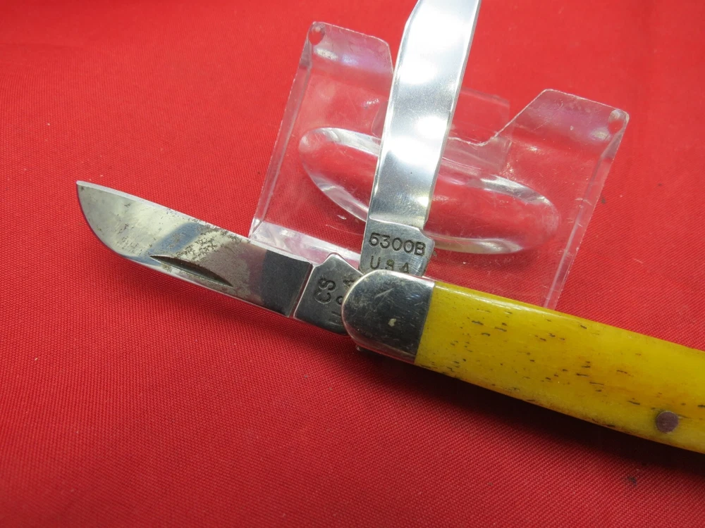 The Moore Maker Matador Texas USA 5300B is a classic pocketknife with a slipjoint lock mechanism. It features a clip point blade type and a striking yellow bone handle, giving it a traditional and collectible look. This stockman style knife has three blades, making it versatile for various cutting tasks. As a modern folding knife, it embodies quality craftsmanship and functionality, ideal for both everyday use and knife collectors. MULTIPLY LISTING MAY VARY SLIGHTLY....CARBON STEEL BLADES MAY HAVE SPOTS.. WE KNOW YOU HAVE A CHOICE WHERE YOU SHOP… THANKS FOR SHOPPING WITH US AT NO PRESSURE SALES,LLC PLEASE BE SURE AND VISIT OUR OTHER ITEMS Thanks for looking YOU WILL RECEIVE THE ITEM PICTURED UNLESS IT IS A MULTIPLE LISTING OR OTHERWISE STATED.ALL BONE KNIVES COME FROM BOVINE (COW) BONE UNLESS OTHERWISE STATED !!