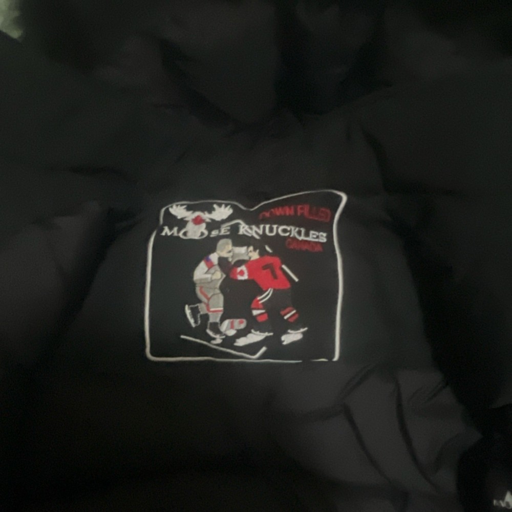 Moose Knuckles Men's Black Jacket M Logo Zipper Button Accents Zip Closure