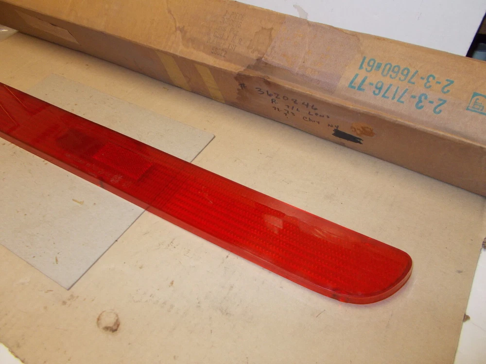 This is a new old stock (NOS) Tail Lamp Lamp Lens w/o Gasket Part # 3620846 (right side) for 1973 Chrysler New Yorker (Except Station Wagon). We are happy to combine shipping on multiple items. Please contact us before paying for a calculated shipping quote. Check out my other items ! Be sure to add me to your favorites list !