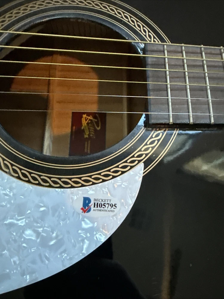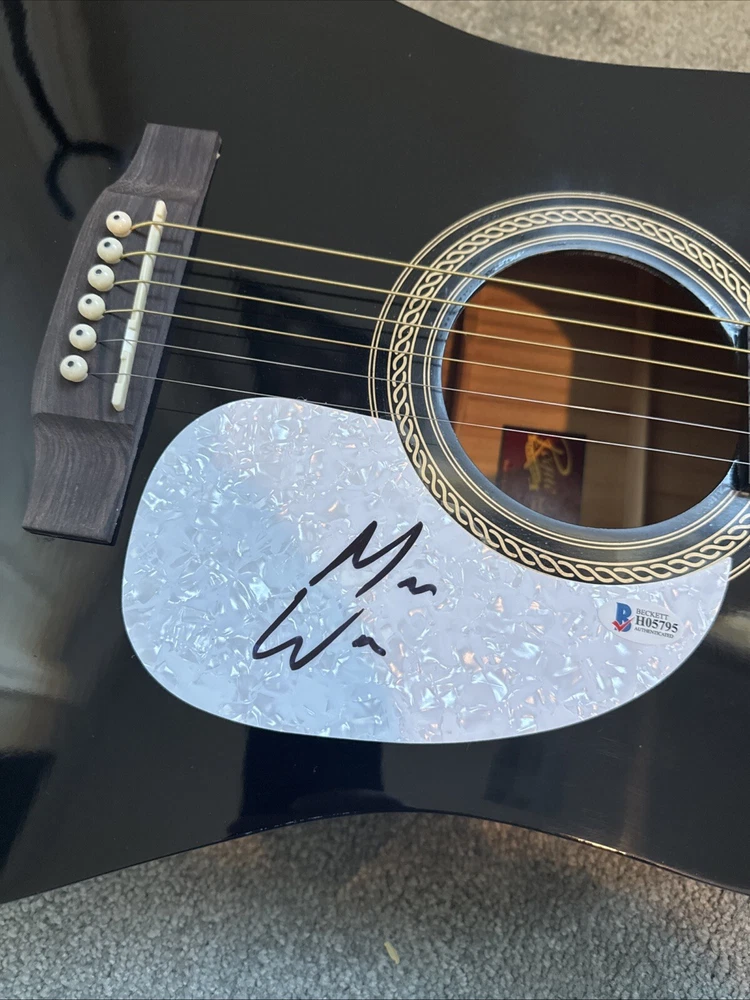 Full size guitar. Morgan Wallen signed pick guard. Authenticated by Beckett. Will ship quickly and securely with a lot of bubble wrap. Guitar is on great shape. Two small white marks in back - very hard to see unless you’re up close. Doubtful anyone would want to play it, but if so, will need new strings. Great collector’s item. The reason I’m selling is because I’m replacing with a new autographed one and only have so many spots on my wall.
