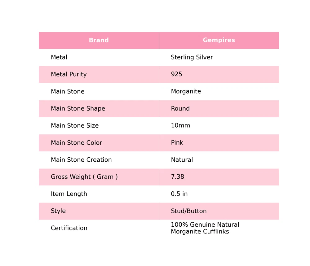 Welcome To Our Shop Gempires ------------------------------------------- With a very minimalist design yet attractive approach, this Cufflinks would be the best choice to gift someone you love. It features luscious 925 Sterling Silver with adornment of glitzy Morganite. Don't wait to get this superb jewelry piece. Morganite Stone Pink Brothers Gift Engagement Cufflinks 925 Sterling Silver Check My Other Cufflinks Listings : Click Here SKU: CL-4-9 Gemstone: Morganite Stone Shape: Round Metal : 925 Sterling Silver Length: 0.5 Inches ___________________________________________________________________ Shipping Handling - Free Standard Shipping all over the world Handling Time - 2 to 5 BUSINESS Days Delivery Time - 7 to 20 Days ( Various on destination ) _________________________________________________________________ Returns - 1.We provide a 100% Money Back Guarantee, excluding shipping costs, within 30 days from the date of item receipt. 2.The item must not be altered or damaged in any way shape or form. 3.Upon receipt of the aforementioned items, your payment will be promptly refunded. 4.Please be so kind as to contact us via email in order to acquire comprehensive return instructions before proceeding with the return of the merchandise. 5.Kindly be advised to allocate a maximum period of 1 business day for the processing of all returns, in order for the appropriate credit to be applied. 6.Sizing does not affect the return policy. _________________________________________________________________ FAQ's - Q.1 ARE THE ITEMS YOU ARE SELLING BRAND NEW? We exclusively offer brand-new products, refraining from the sale of pre-owned jewelry. Our entire jewelry collection is composed of 100% natural, conflict-free pieces. We do not engage in the trade of imitation or lab-grown gemstones and diamonds. Q.2 WHAT ARE YOUR BUSINESS HOURS? we operate 24x7 as we have a dedicated team who works in different shifts to deliver the services to our valuable customers. ________________________________________________________________ Gempires is committed to delivering customers an unparalleled experience through the provision of exquisite handmade jewelry, meticulously crafted to uphold the most exacting standards of quality. Our operations encompass dual roles as both discerning connoisseurs and skilled artisans within the realm of jewelry making. We proudly hold an extensive proficiency in the fine art of enhancing gemstones, allowing us to harmonize them seamlessly with diverse aesthetic inclinations. We are delighted to extend to you the privilege of curating your very own jewelry collection. This collection will be graced by the presence of genuine and splendid natural gemstones, each possessing an innate authenticity and beauty that is truly unparalleled. **** STAY BLESSED ALWAYS*****