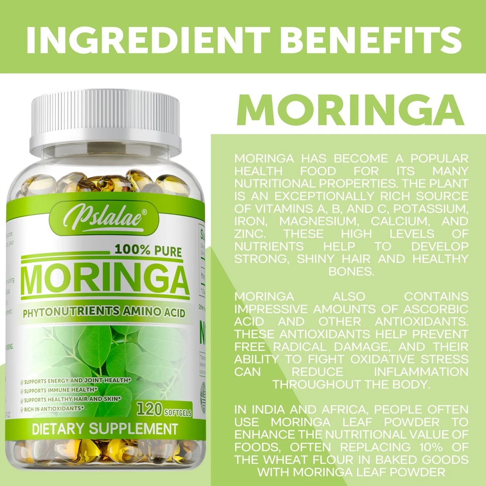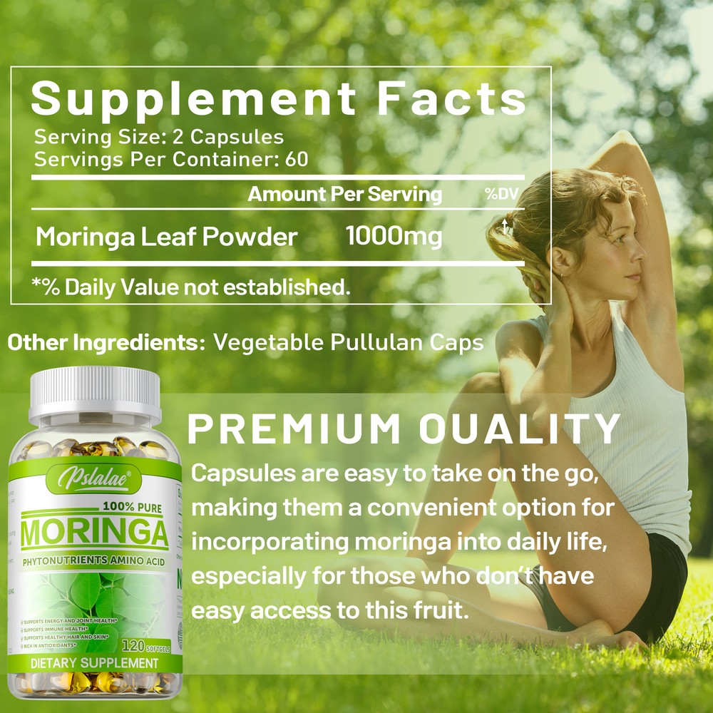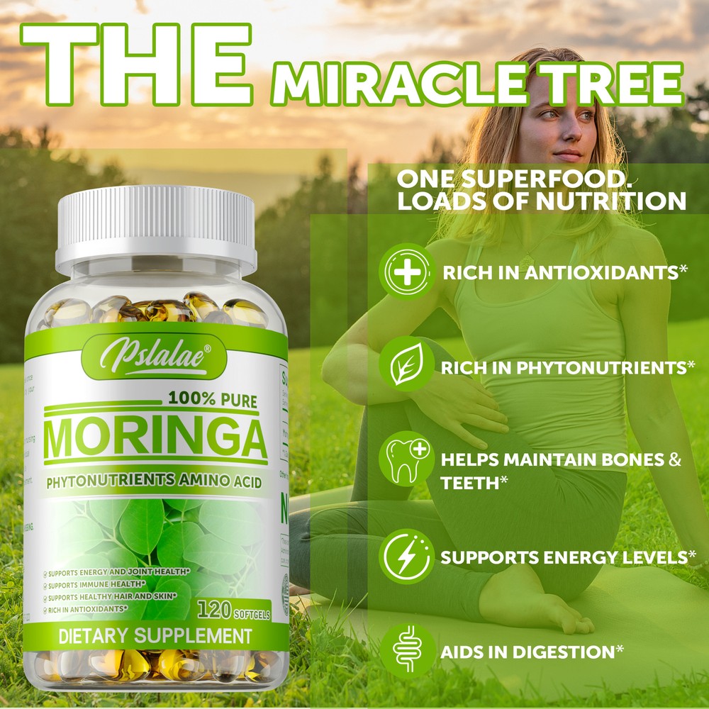 Effects: Supports Metabolism, Immunity, Skin and Hair Health Ingredients: Moringa Leaf Directions: Take 2 capsules once daily after a meal. Shipping: Ships within 48 hours on working days. Shelf life: 2 years Description: Discover the purest nature with premium single origin. From tree to bottle, delivering a pure product without any additives or preservatives. Our certified organic Moringa is grown in volcanic ash soils rich in raw nutrients. Gently dried in state-of-the-art facilities to preserve enzymes and nutrients. The Most Nutrient-Dense Plant on Earth - Moringa is considered the most nutrient-dense plant created by man. The leaves contain Vitamin A, Vitamin B, Calcium, Iron, Minerals, Essential Amino Acids and more. Document