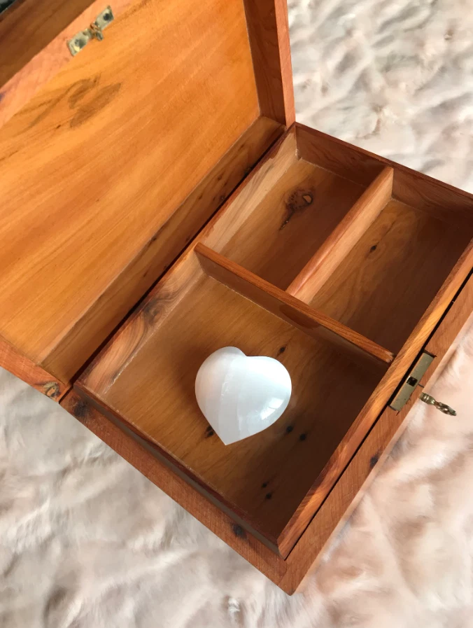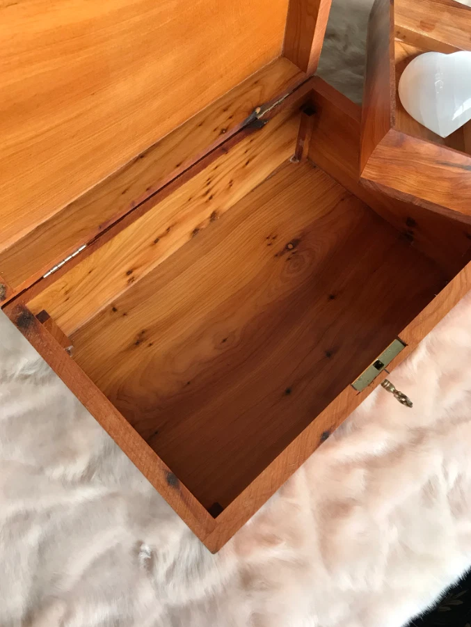 AtlasMuse Handmade Thuya Wooden Box – Crafted with Love by Moroccan Artisans AtlasMuse proudly presents its exquisite Thuya wooden box, meticulously handcrafted by skilled Moroccan artisans. Ideal for storing jewelry, cherished belongings, and important documents, this box combines functionality with timeless elegance. πŸ’‘ Quality Assured: Each box is crafted using the finest Thuya root burl wood, with careful moisture management to prevent deformation over time. ✨ Key Features: Three separated compartments inside, with spacious storage underneath (Two Storage Levels). Secure lockable design with a brass key. Customization available: engrave/print text on the lid, leather, or velvet interior lining. πŸ“ Dimensions: Length: 20 cm / 7.9 inches Width: 13.5 cm / 5.3 inches Height: 8 cm / 3.1 inches 🚚 Shipping Details: Your order will be shipped within 1 day of purchase, with express shipping delivering in 3-5 business days. Experience the elegance and craftsmanship of AtlasMuse !