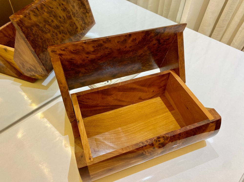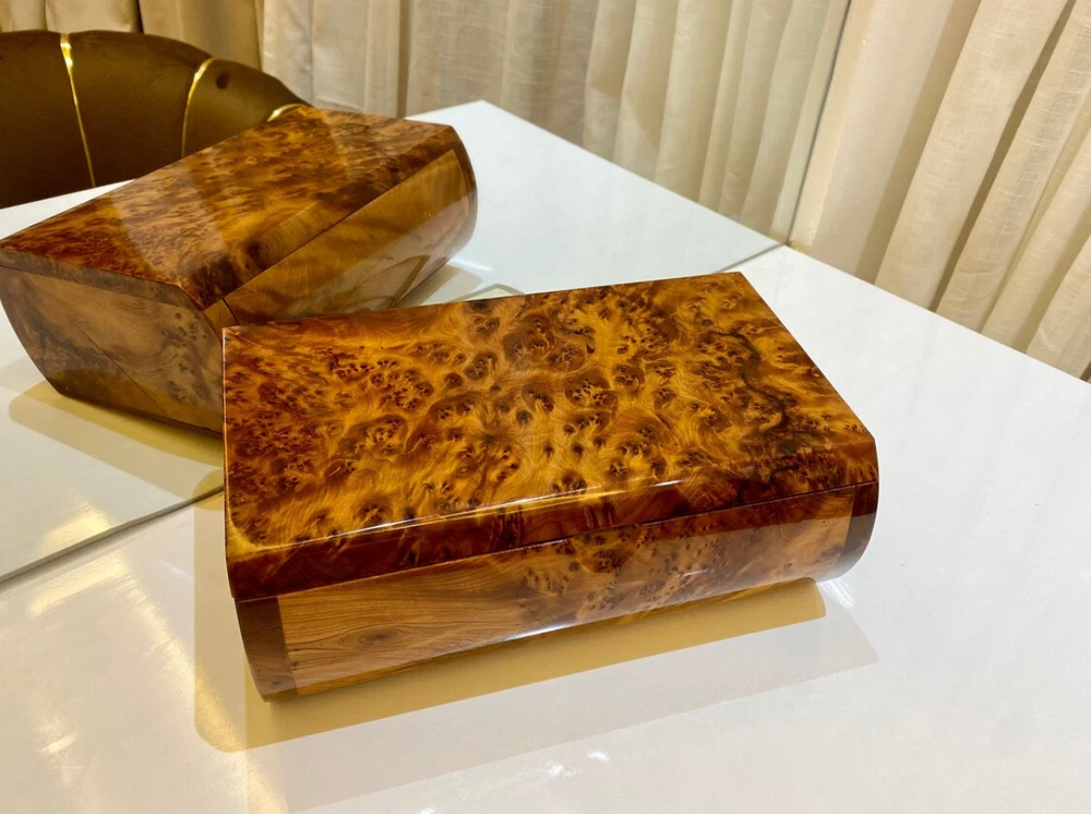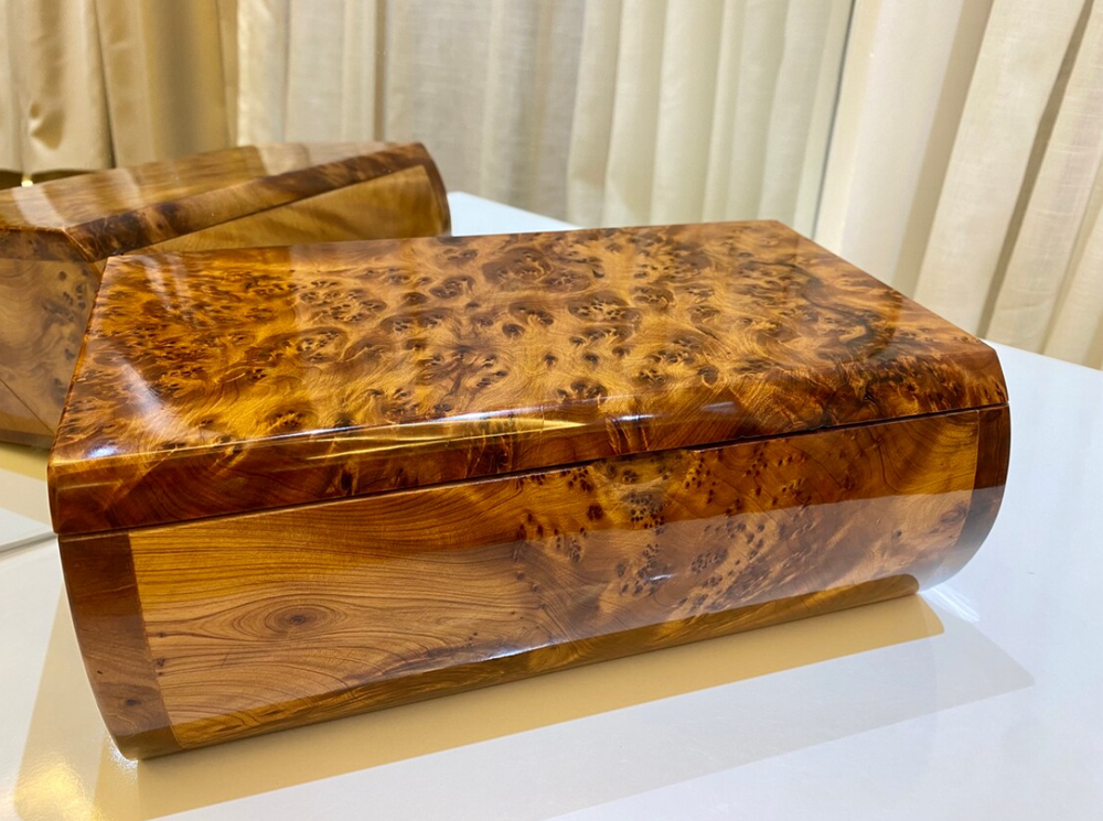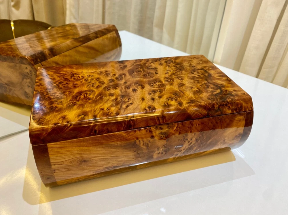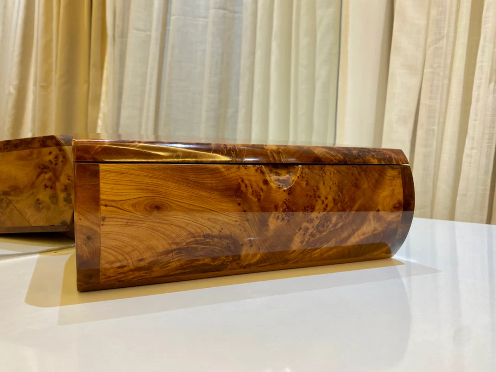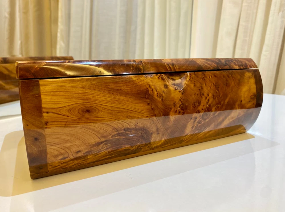brings you its exquisite thuya wooden box, handmade with love by Moroccan artisans. This box is perfect for keeping jewelry π, valuable belongings, and important papers. Key Features: Large Storage Space: Ample room to store your precious items. Customization Available: We accept custom orders for engraving or printing text on the lid. Product Specifications: Dimensions: Length: 27 cm β 10.6 inches Width: 15 cm β 5.9 inches Height: 10 cm β 3.9 inches Shipping and Estimated Arrival: Processing Time: It takes 1 day to ship your order after receiving it. Delivery Time: 3-5 business days using express shipping. Satisfaction Guaranteed: If you're not happy for any reason with our box, feel free to return it back if you're not satisfied π Contact Us: For any information or questions, feel free to contact us, and we will reply as soon as possible.