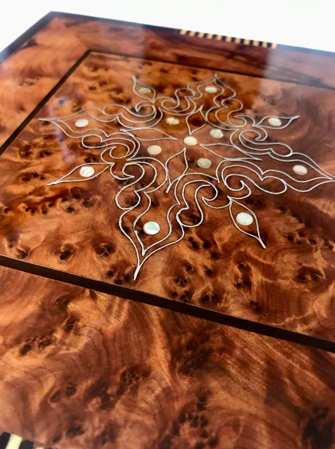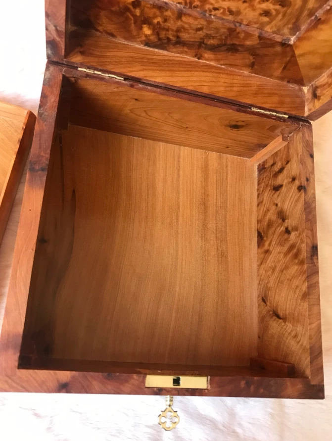 Moroccan Lockable Thuya Wood Burl Jewelry Box Organizer Keepsake