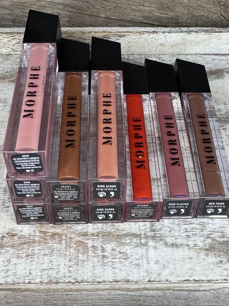 `β¨ NEW Morphe Lip Gloss 4.5ml β Full Size β¨ Choose from gorgeous shades: π Hotshot β Fiery coral red π Sing Along β Soft nude pink π Now Playing β Rosy mauve π Trippy β Iridescent shimmer nude π Boo Thing -- Nude, beige matte finish π Chill β Clear, glossy finish π Boho β Warm peachy nude High-shine, non-sticky formula delivers smooth color + mirror-like shine. Perfect for glam nights, everyday glow, or as a stocking stuffer this holiday season. π Mix & Match for holiday beauty bundles!` MSRP (per gloss): $18