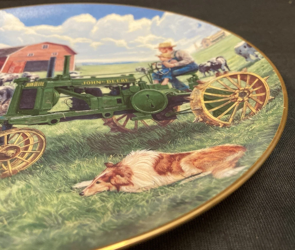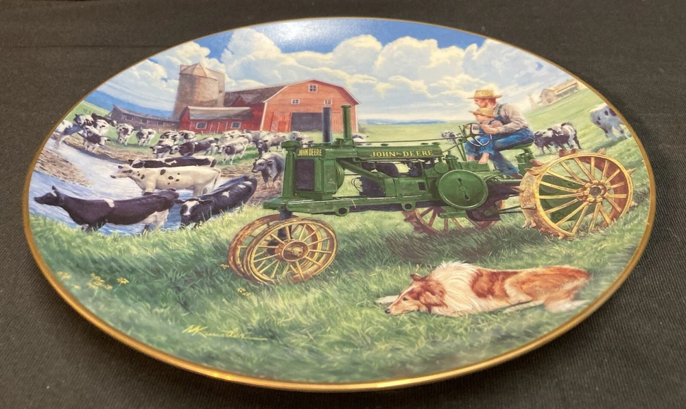 This 8” round collector plate titled “Days of Splendor" by Mort Kunstler captures a nostalgic scene of farming with a John Deere tractor and cows. The plate is pre-owned and comes in good, clean condition with no chips, cracks, or breaks. Please see pictures for details. If you have any questions or concerns, please do not hesitate to contact us. Check out our other items and message us if interested in more than one listing as combining items could save you money on shipping.