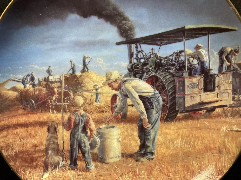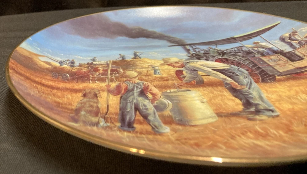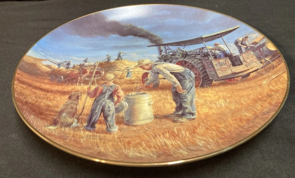 This 8” round collector plate titled “Prairie Gold" by Mort Kunstler captures a nostalgic scene of farming with a John Deere tractor and horses. The plate is pre-owned and comes in good, clean condition with no chips, cracks, or breaks. Please see pictures for details. If you have any questions or concerns, please do not hesitate to contact us. Check out our other items and message us if interested in more than one listing as combining items could save you money on shipping.