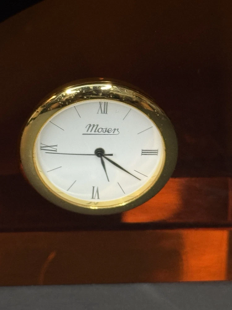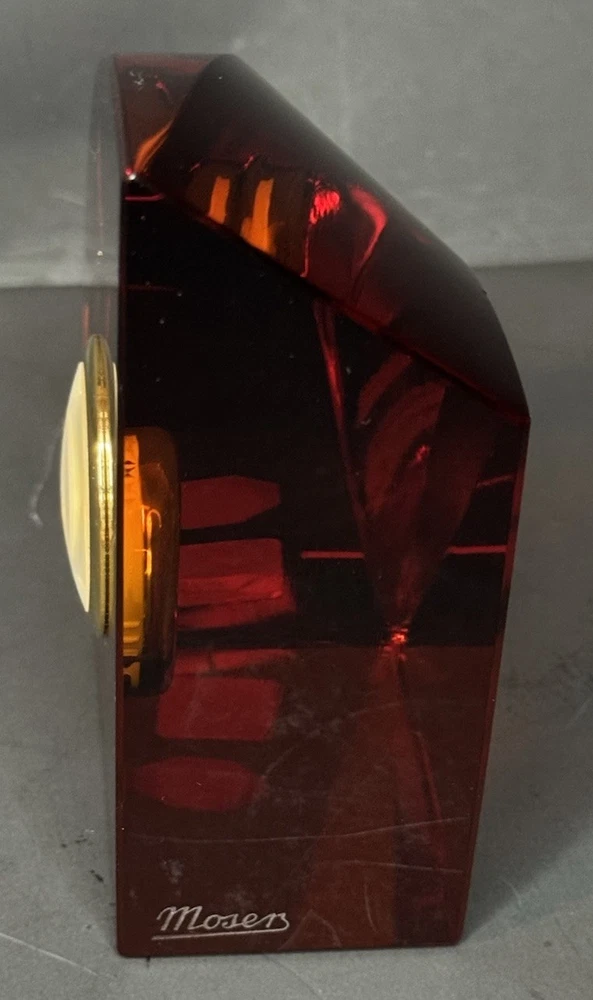 $ 26.4Moser Red Crystal Clock Czech Signed