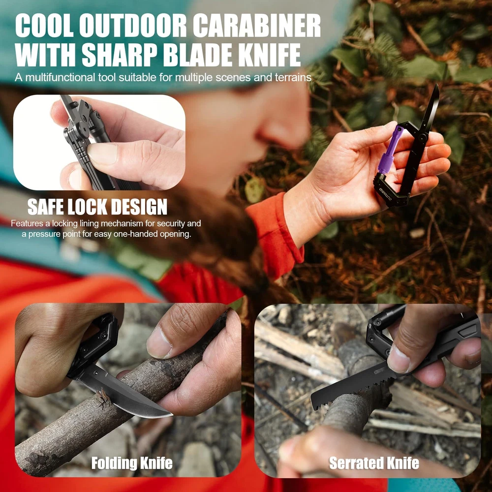 Mosquetón multiherramienta con cuchillos de bolsillo, mosquetones EDC, cuchillo dentado, cuerda...