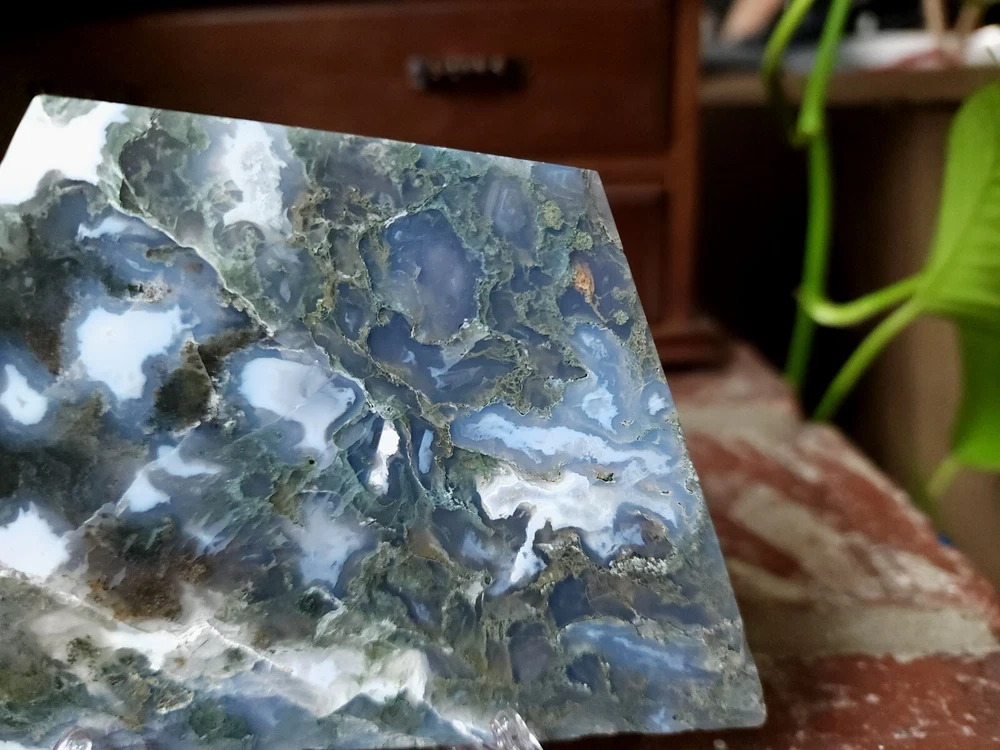 Moss Agate Natural Crystal Slab for Healing and Decor