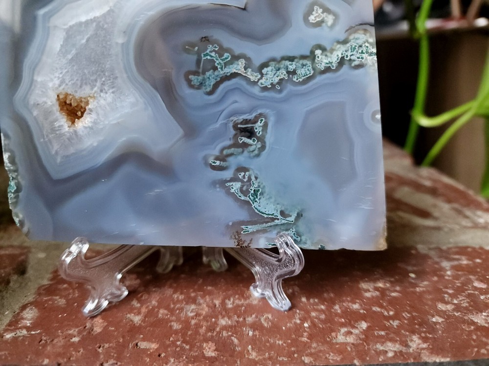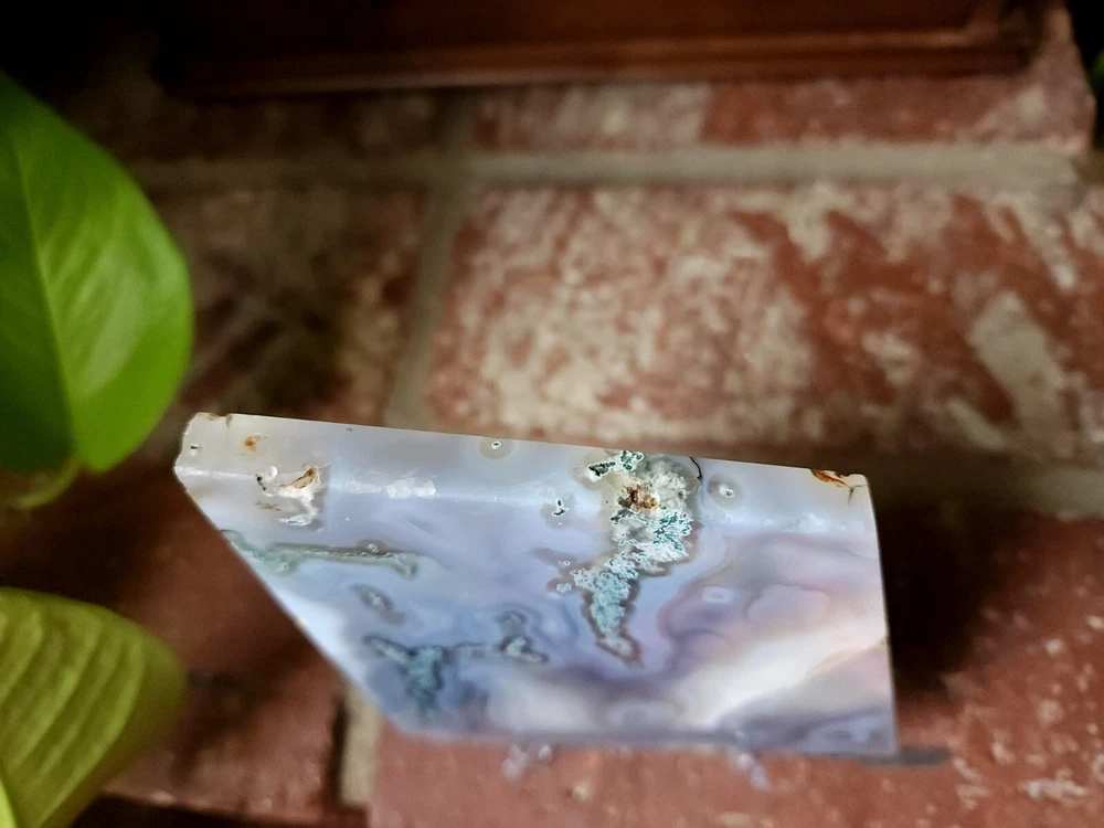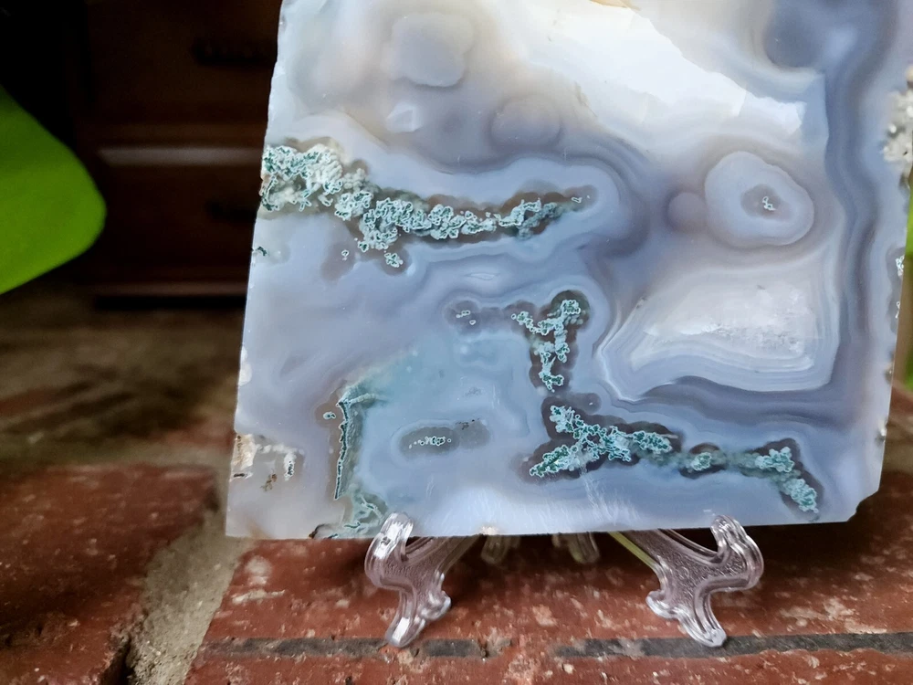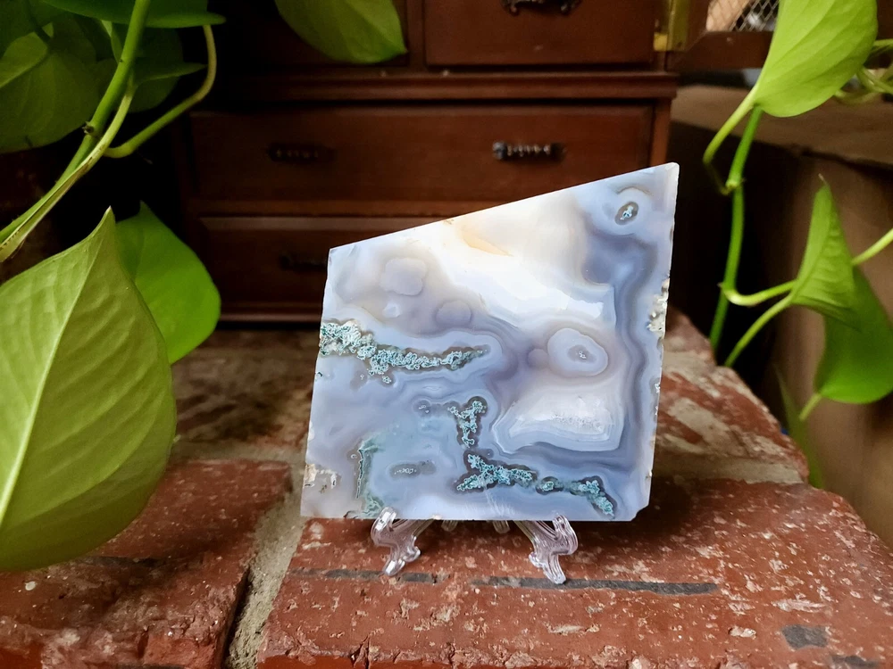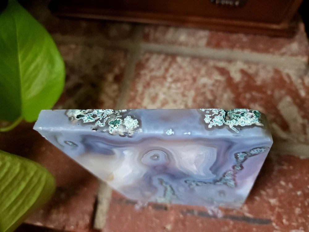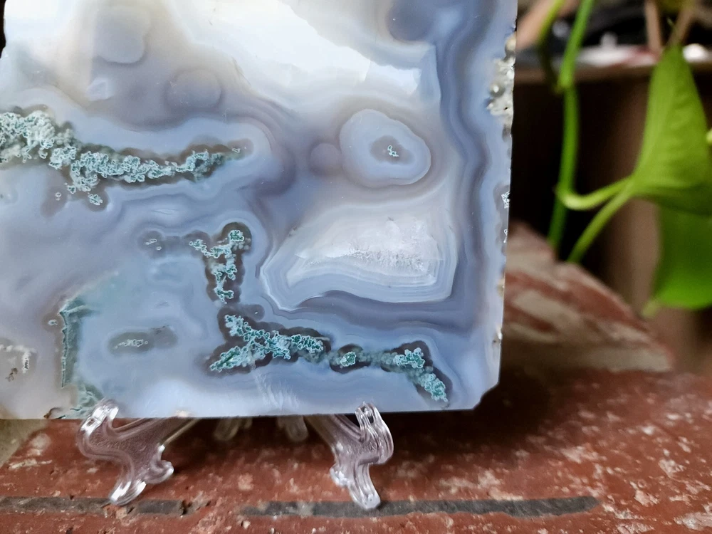 Moss Agate Crystal Slab Slice 10.5 oz 4 inches / 3.7 inches Includes 1 clear display stand