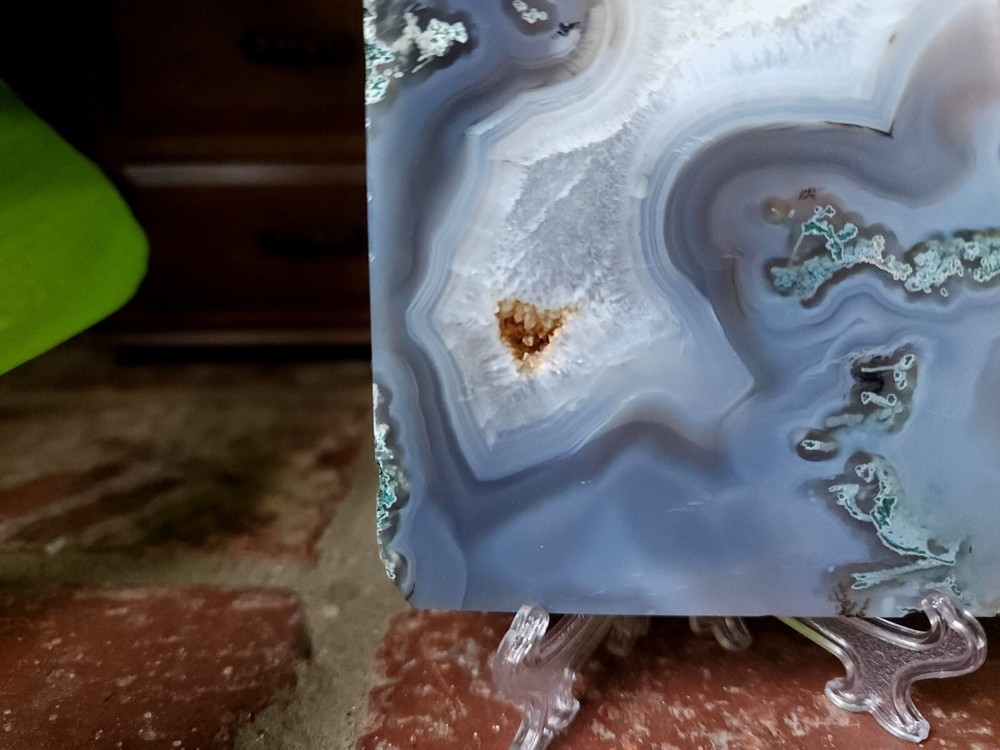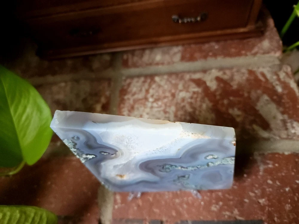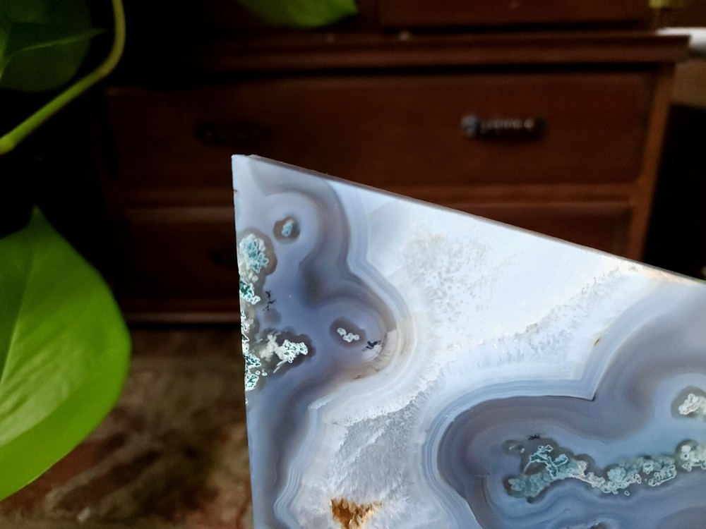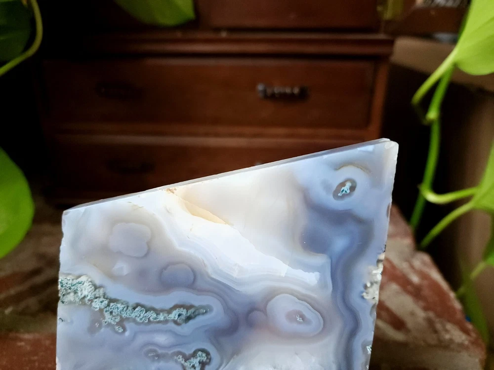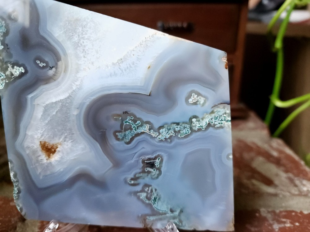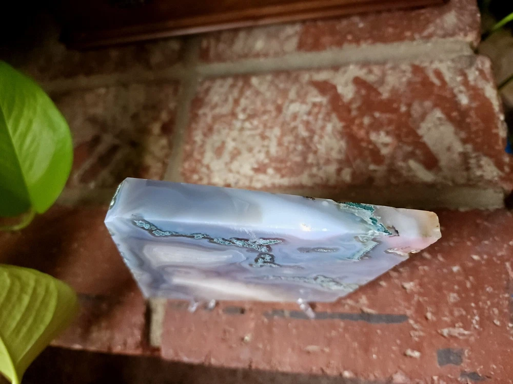 Moss Agate Crystal Slab Slice 10.5 oz 4 inches / 3.7 inches Includes 1 clear display stand