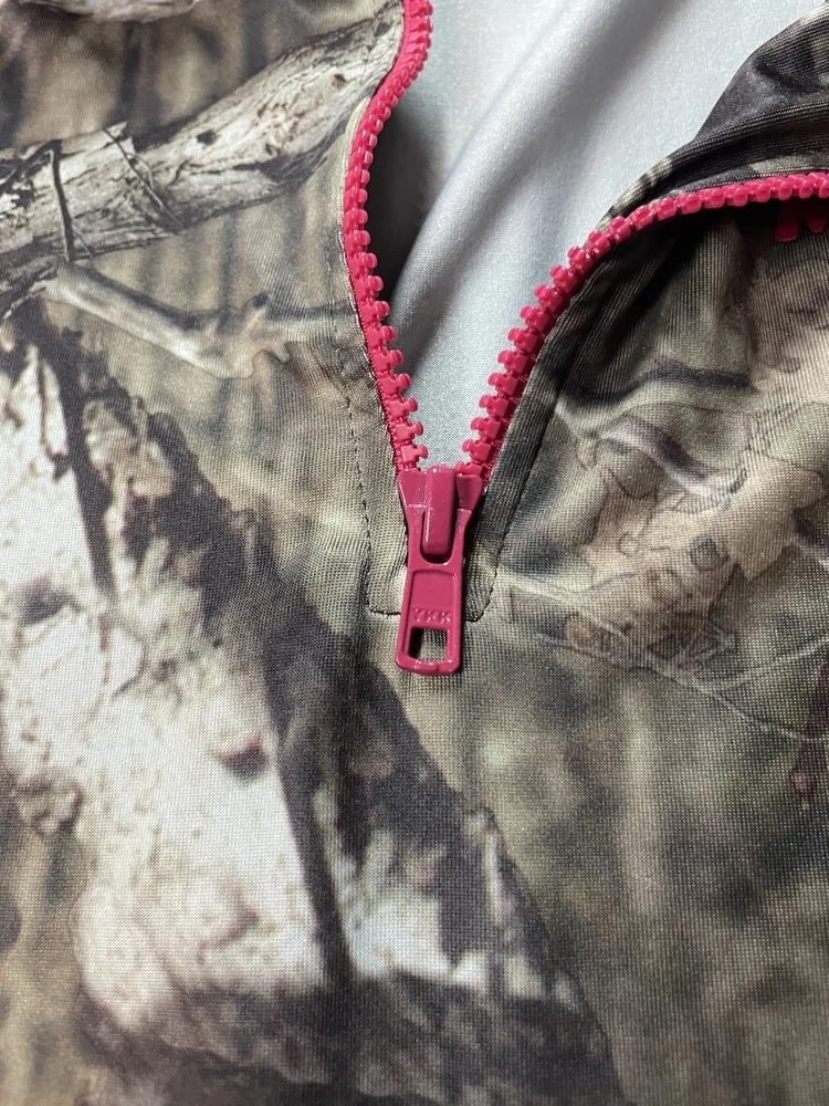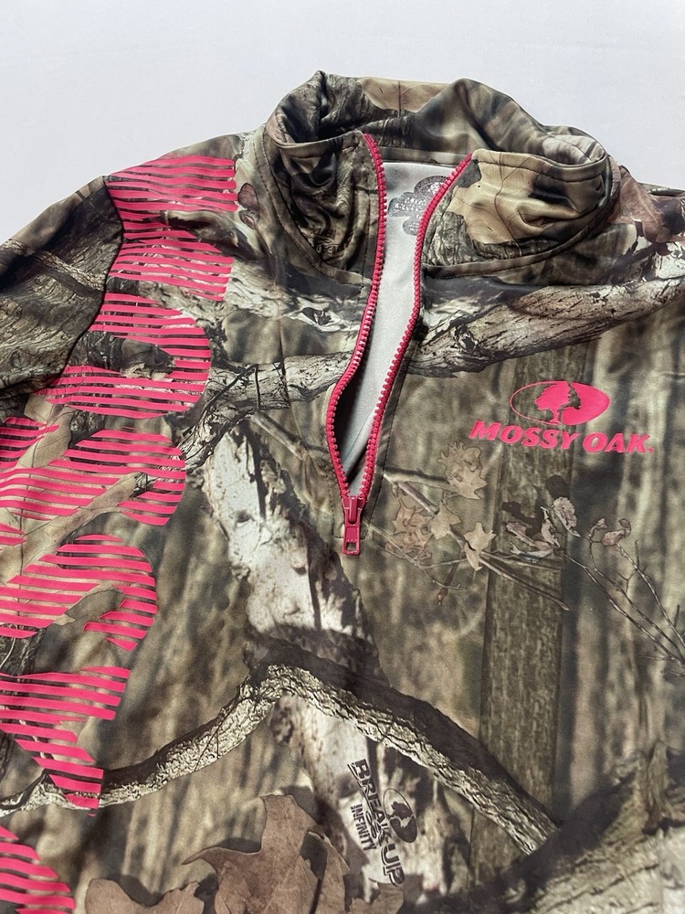 The Mossy Oak Break Up Infinity Pullover Girls XL Camouflage Pink 1/4 Zip Jacket is a stylish and functional piece of clothing perfect for outdoor activities. Made of lightweight polyester material, this jacket features a camouflage pattern in multi-color with a 1/4th zip design and glove sleeves for added warmth. Designed specifically for girls, this pullover is comfortable and practical for hunting, camping, or any other outdoor adventure. Made in Guatemala, this jacket combines quality craftsmanship with a feminine touch for a versatile addition to any wardrobe.