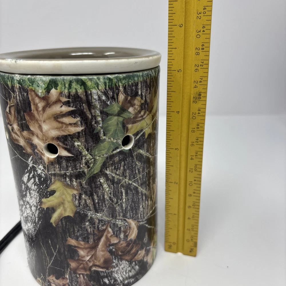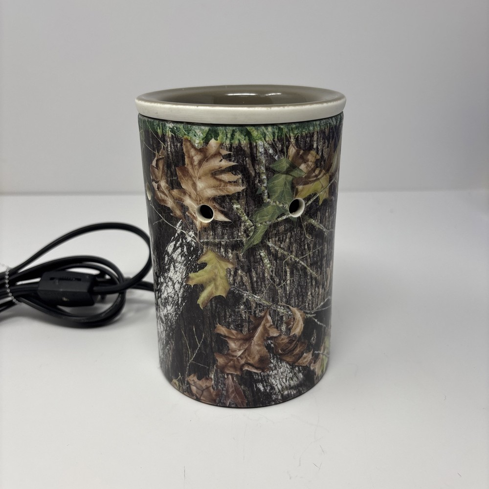 The Scentsy electric oil/wax warmer in Mossy Oak camo design (model 23347) is a multicolor container style wax warmer. It stands 6 inches tall and features a camouflage pattern. Ideal for adults, this wax warmer is perfect for adding a touch of fragrance to your home in a stylish and outdoorsy way.