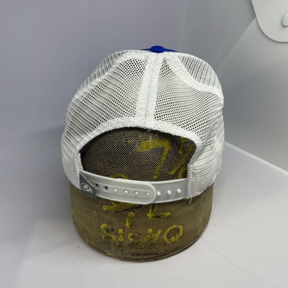 Color: Blue Features: Adjustable, Breathable, Mesh Back gtin13: Does not apply Fabric Type: Knit Country/Region of Manufacture: China Handmade: No Occasion: Casual, Workwear Brand: Mossy Oak Style: Trucker Hat Character: Fish Theme: Fishing Personalize: No Signed: No Department: Men UPC: Does not apply MPN: NA Pattern: Solid Seller Notes: “Good condition, minor wear consistent with age and use. See photos.” Season: Fall, Spring, Summer, Winter Size: One Size Vintage: No Material: Polyester