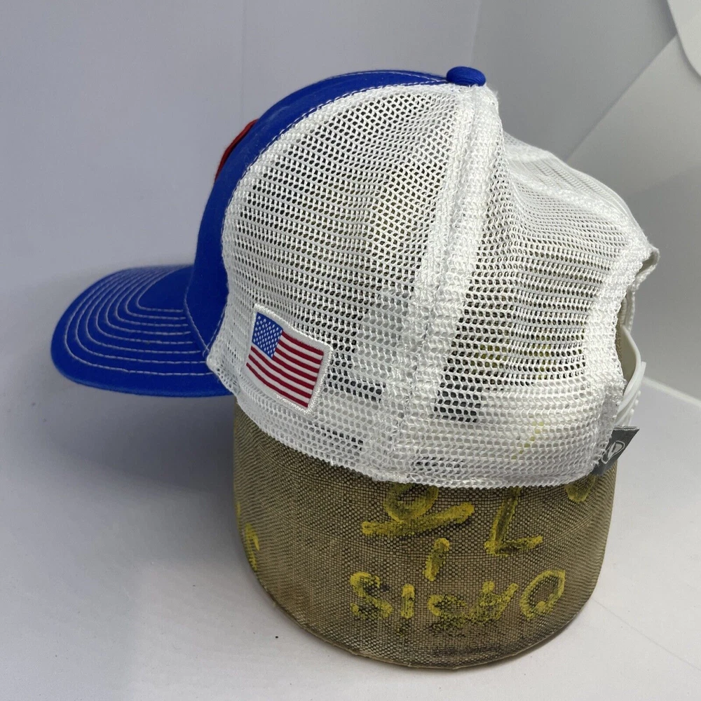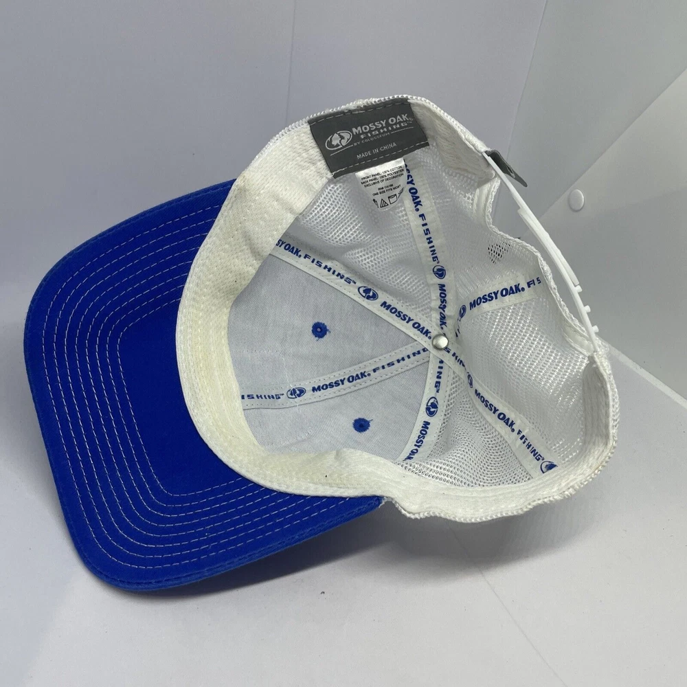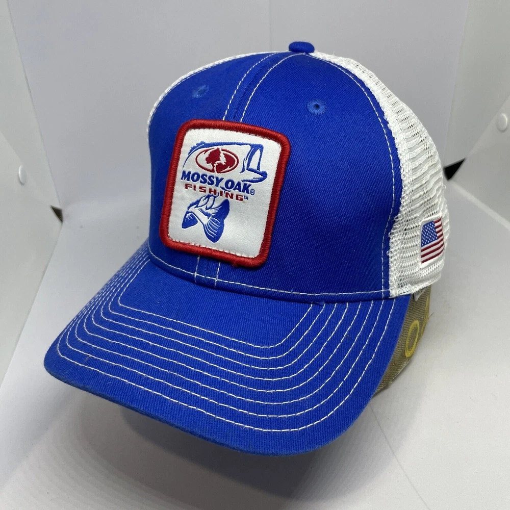 Mossy Oak Fishing Hat Cap Snapback Blue White Trucker Adjustable Outdoor US Flag