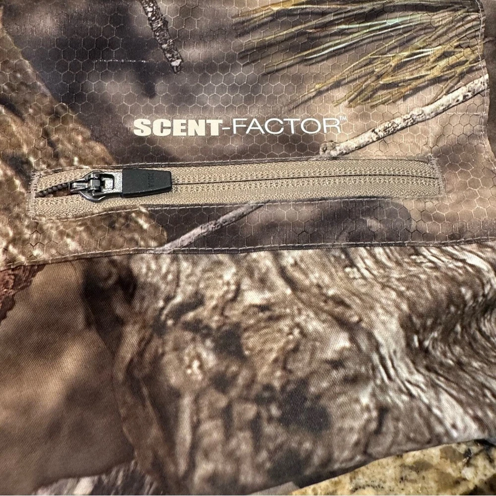 This is a super nice camo jacket by Mossy Oak. Men’s size large lightweight jacket is a full zip. It is the scent factor brand and is in excellent gently used condition.